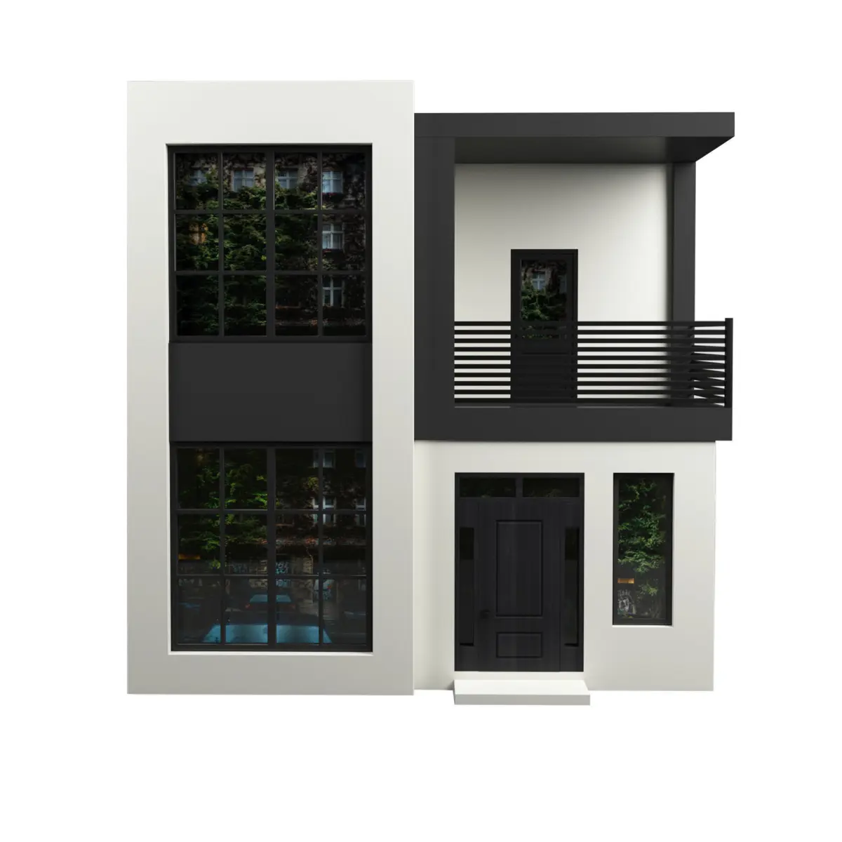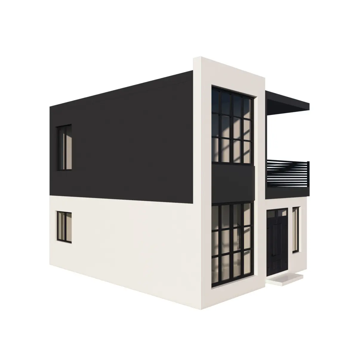 Small Modern house with four rooms, house height 7.45m length 7.2m width 9m square 126m.Model was partly unwrapped.