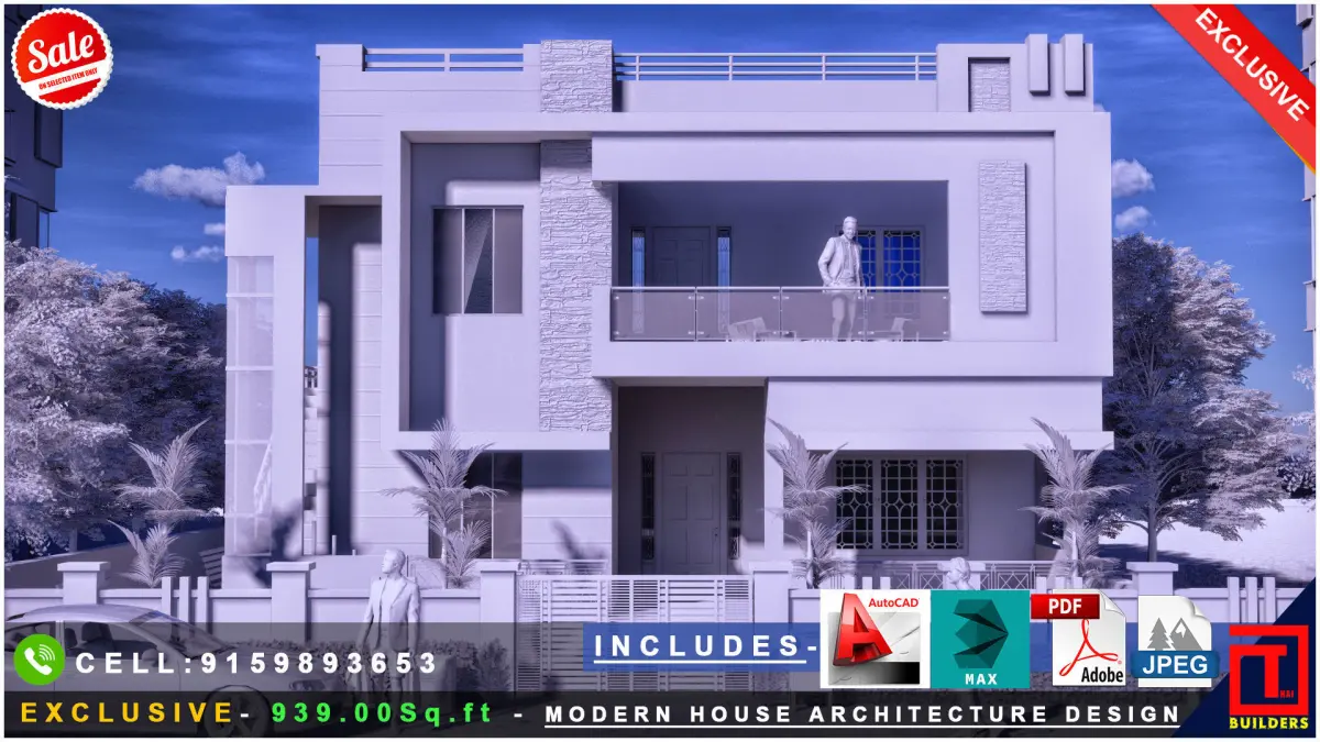 I am a Professional Architect939.00Sq.ft - MODERN HOUSE ARCHITECTURE DESIGNINCLUDE : AUTOCAD,SKETCHUP PRO,3DS MAX,OBJ,PDF AND JPEG.CONTACT : +91-9159893653.Email ID : gulothungane@gmail.com