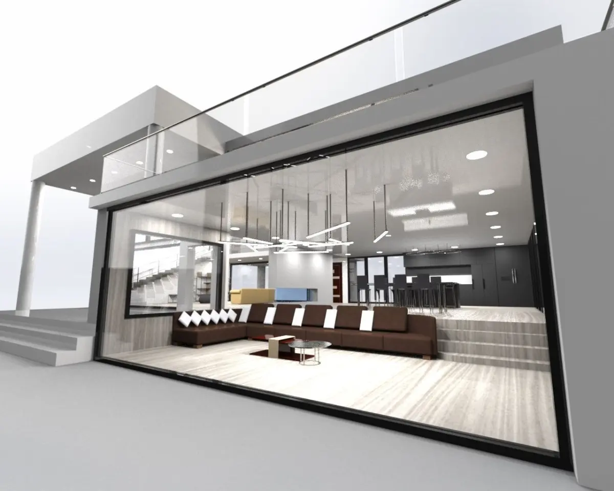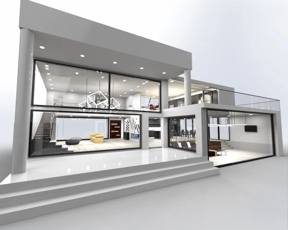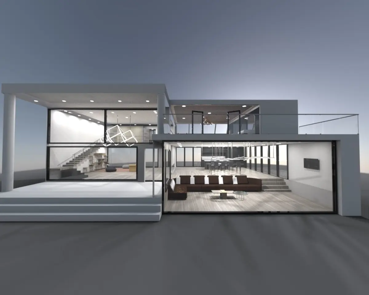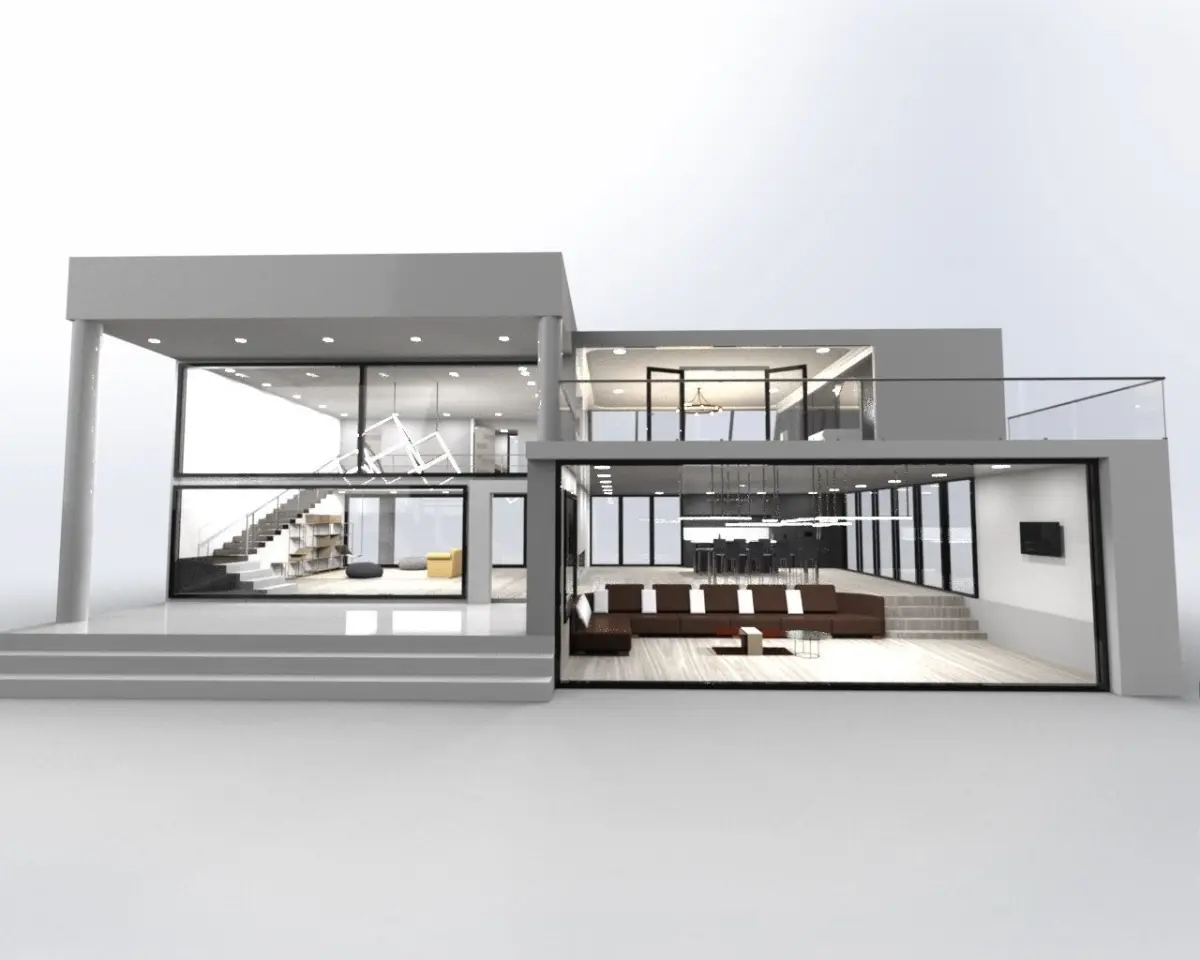full modern exterior/interior house design assembly with furniture made individually