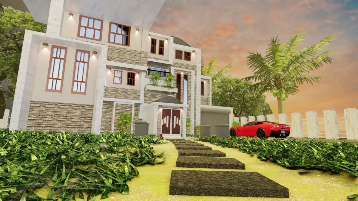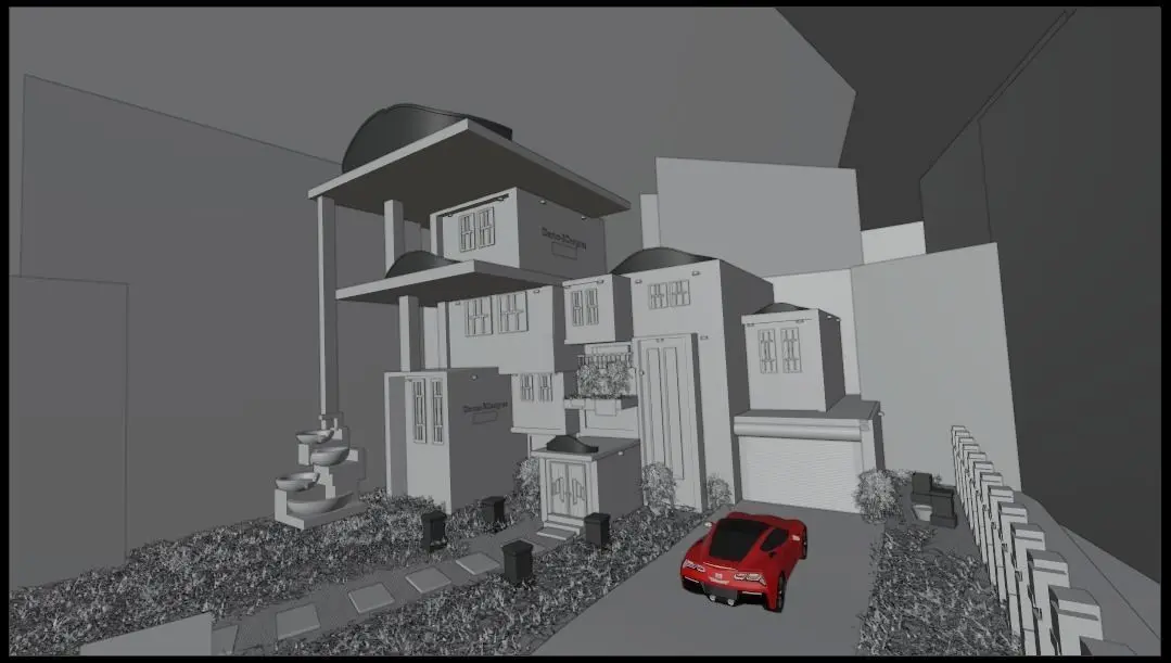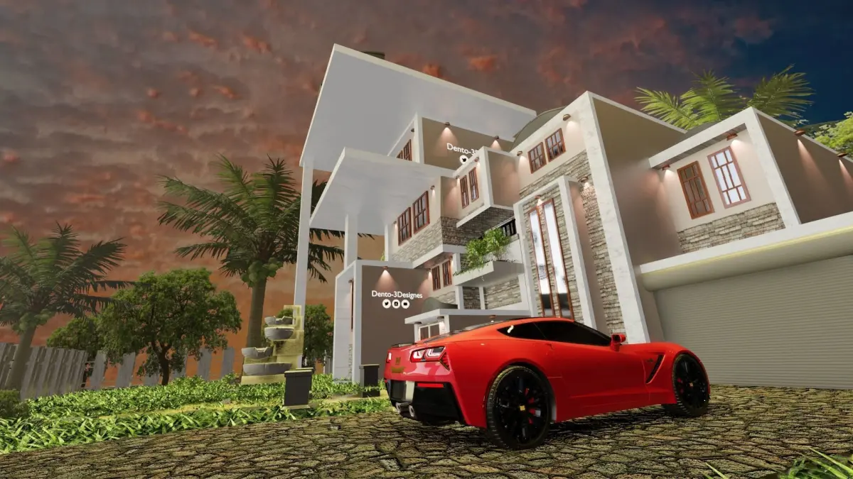 modern house material modeling prepared only for blender with a home yard, car , foundation and outer wall and u can use it for a game or anything you want