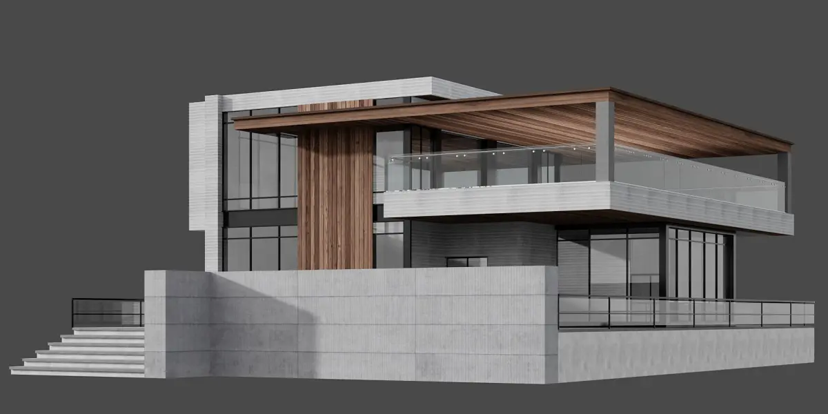 the building includes detailed railing,window frames glass spiders, railing spiders and.....