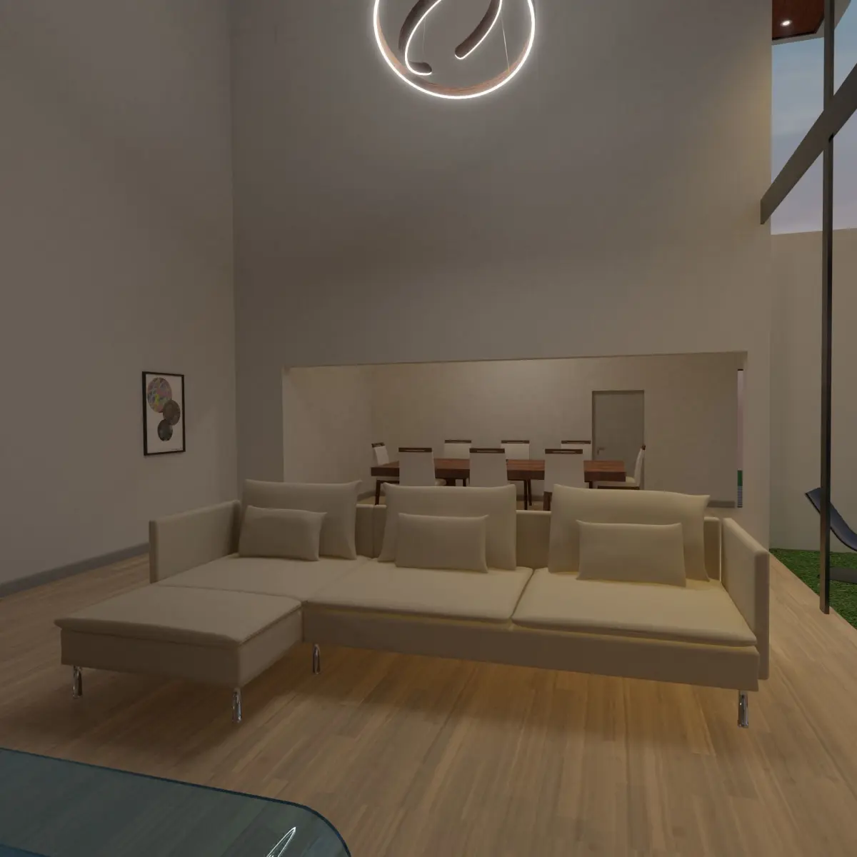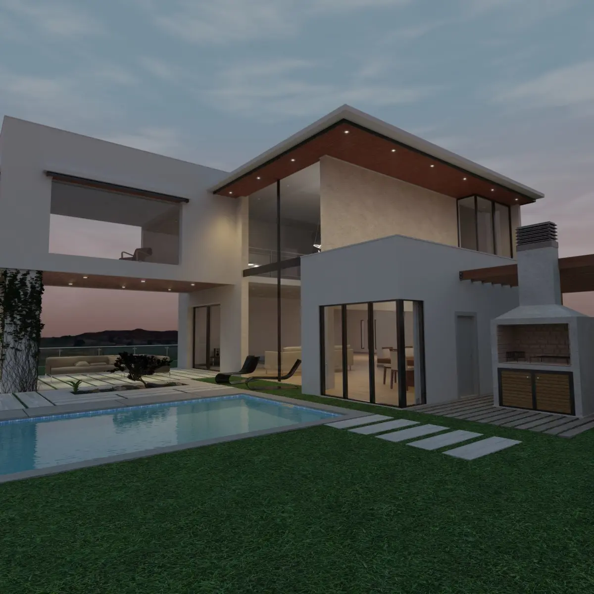 Modern minimalist mansion scene. The model is also composited so the lights have realistic effects on the final render.All the textures and materials are packed on the file.The product is well organised in different collections to make it easier to edit it.