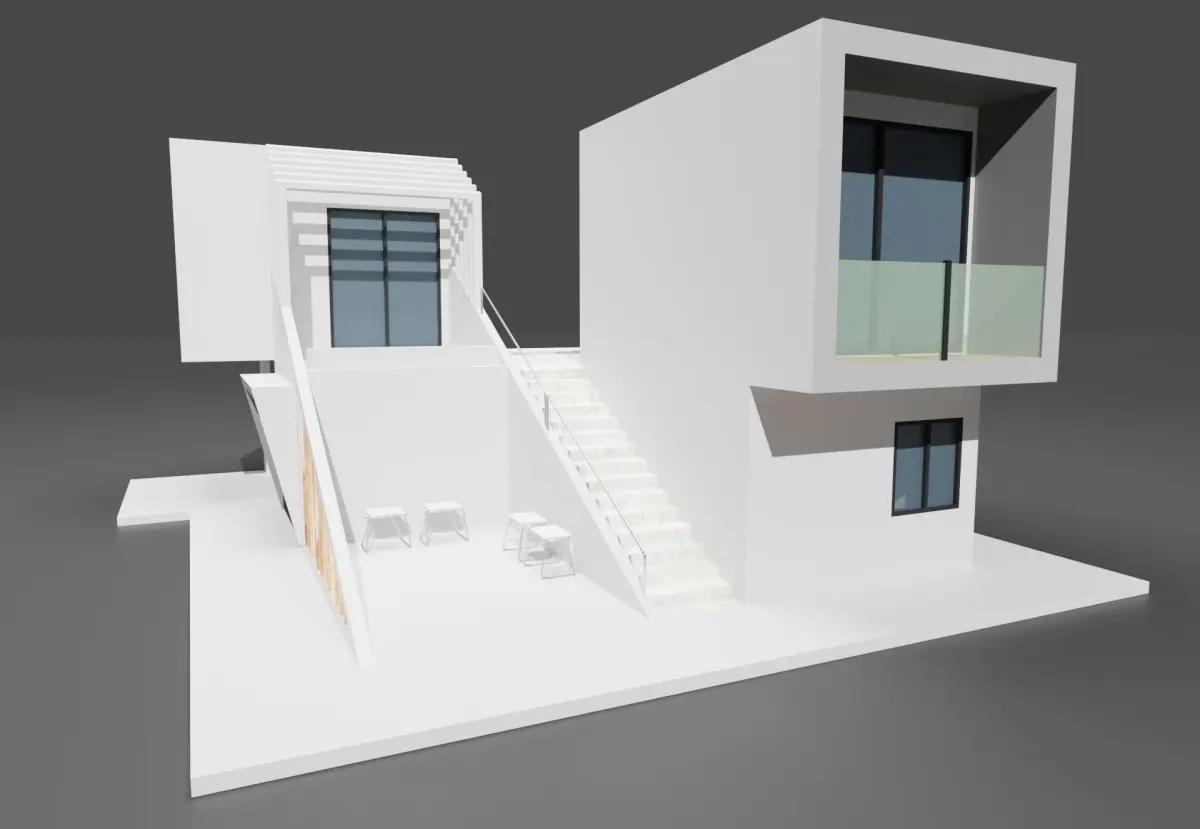 Modern housing project model Blender 2.9 format OBJ(.obj,.mtl) and Autodesk FBX (.fbx)