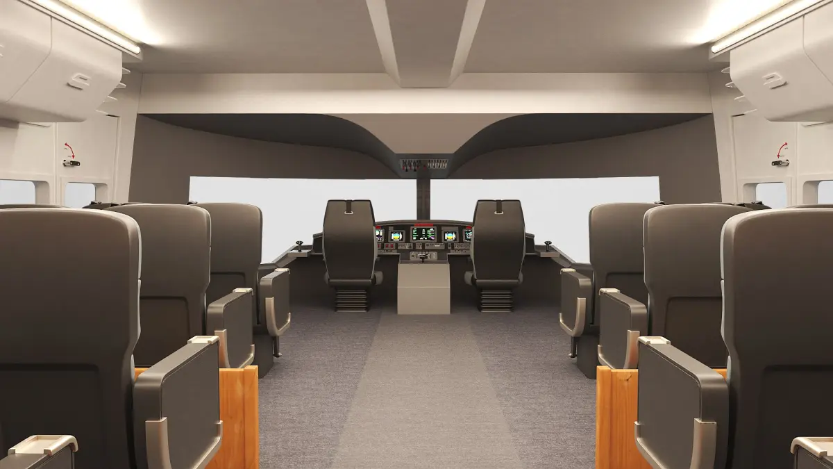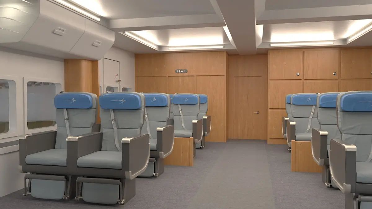 This meticulously crafted model showcases a spacious and elegant cabin equipped with plush seating and modern amenities, offering a premium travel experience. The exterior design features aerodynamic lines and innovative propulsion systems, emphasizing both style and sustainability.