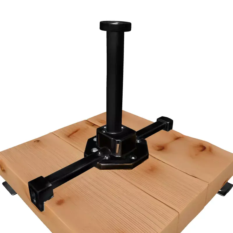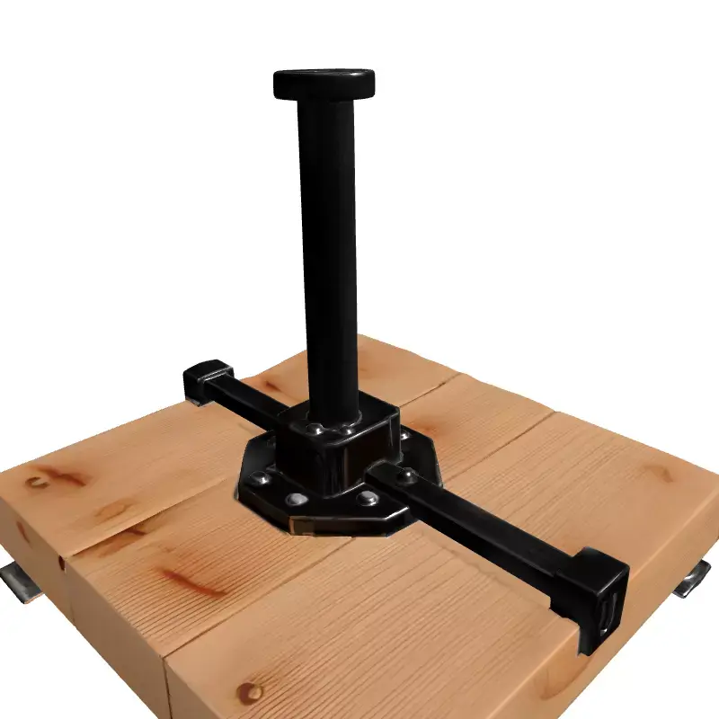 This highly detailed 3D model represents a modern industrial stand or base, meticulously designed with a blend of natural wood and robust metallic components. It features a sturdy square wooden platform supporting a central, upright metal post anchored by a hexagonal bolted base. Four articulate metal arms extend from the central mechanism, providing a distinctive mechanical aesthetic, while four stable metal feet elevate the entire structure. This versatile asset is perfect for adding a touch of contemporary industrial design to various digital projects, including game development as an interactive prop or environmental detail, realistic architectural visualization scenes, product rendering, or immersive augmented reality (AR) applications. The model boasts clean, optimized topology, making it efficient for real-time applications like games and AR/VR, while also being perfectly suited for high-quality static renders in film, animation, or digital art. It is fully UV unwrapped and includes high-quality PBR textures to ensure realistic representation of the wood grain and brushed metallic surfaces. Supported file formats include GLB, OBJ, FBX, STL, USD, DAE, ABC, and PLY, guaranteeing broad compatibility with most 3D software and game engines. This model is ready for immediate integration into your next project, offering both aesthetic appeal and practical utility.