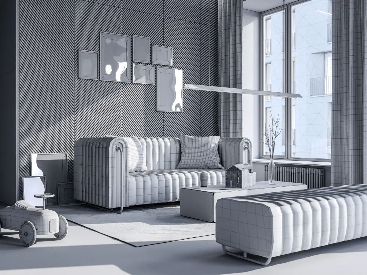 This scene contains the interior model with all furniture visible on the previews, all materials, maps, max-file corona render settings, corona frame buffer post settings, set-up cameras and all interior lights/sun.