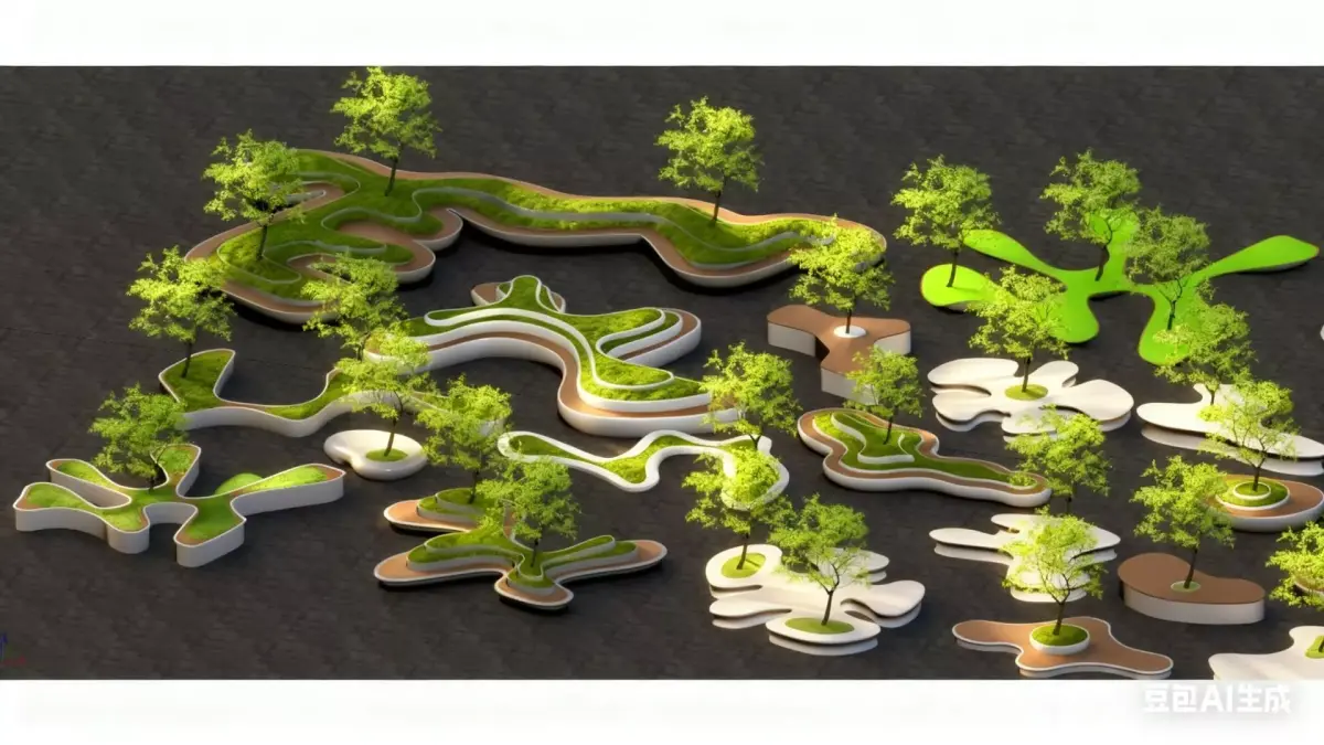 This is a set of modern-style irregular landscape tree planter/ greening module materials. Characterized by smooth curves and irregular shapes, they integrate elements such as lawns, pavements, and trees. Suitable for landscape design schemes in scenarios like parks, commercial spaces, and courtyards, these materials can be directly reused as SU (SketchUp) components. With a lightweight and flexible style, they boast both aesthetic appeal and practicality.