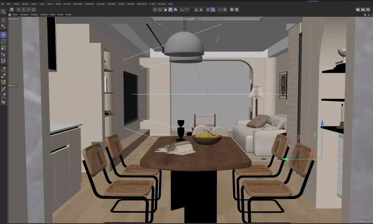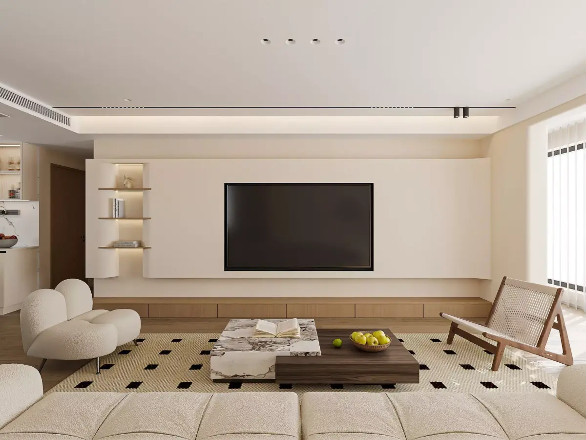 Modern Japandi Dining and Living Area 3D model