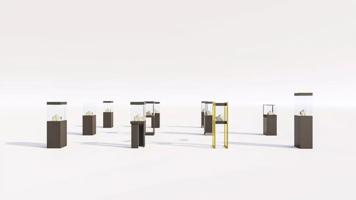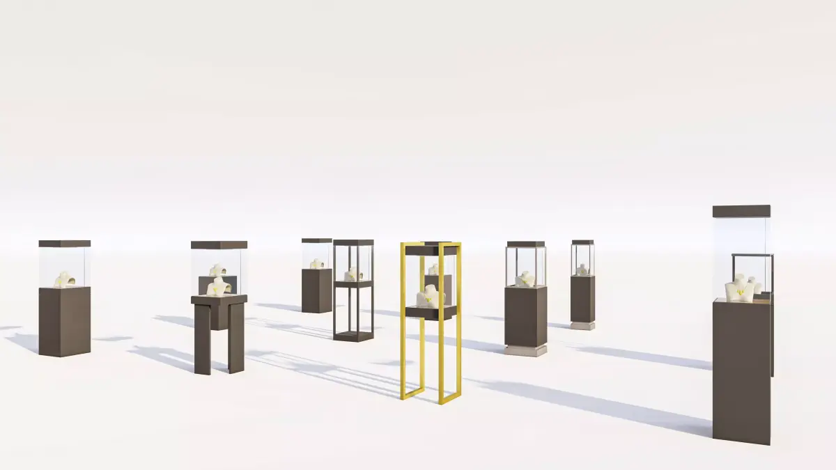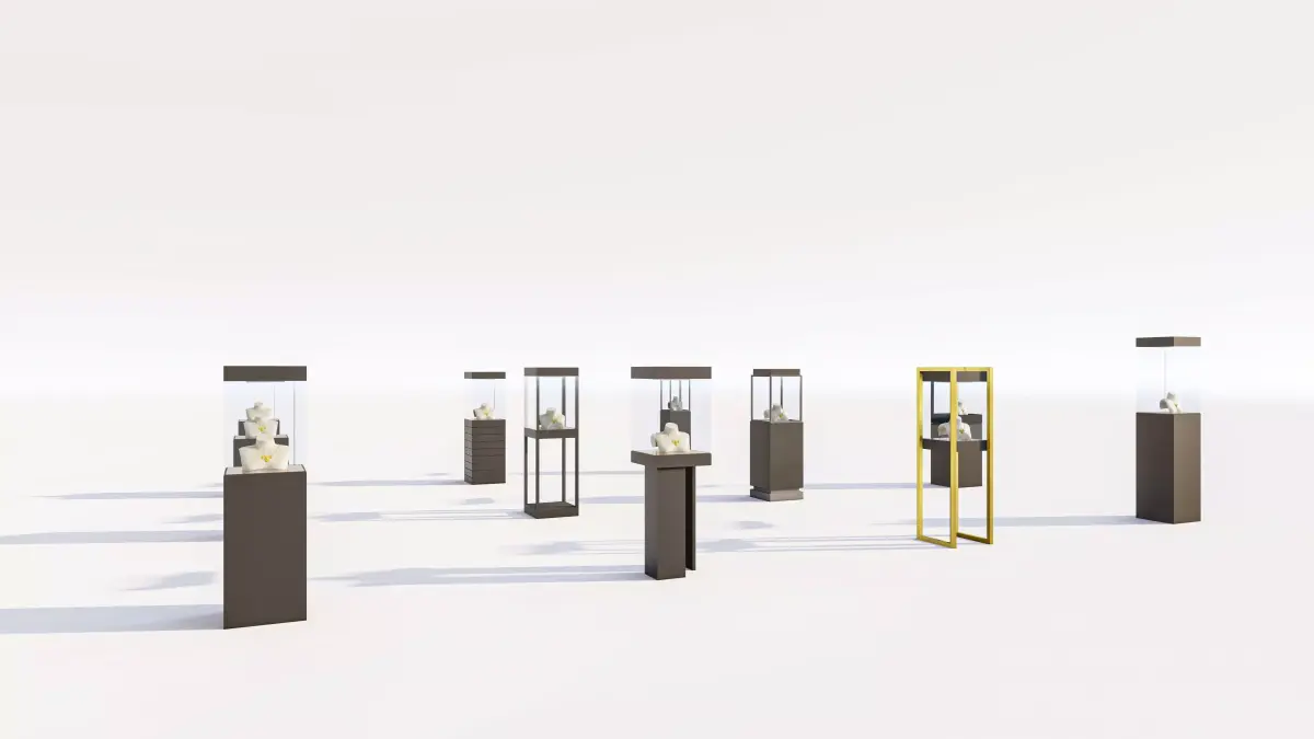 This is a versatile, high-quality 3D model collection of Modern Jewelry Display Stands and Showcases, essential for retail interior design, commercial architectural visualization (Arch-Viz), and product presentation projects.