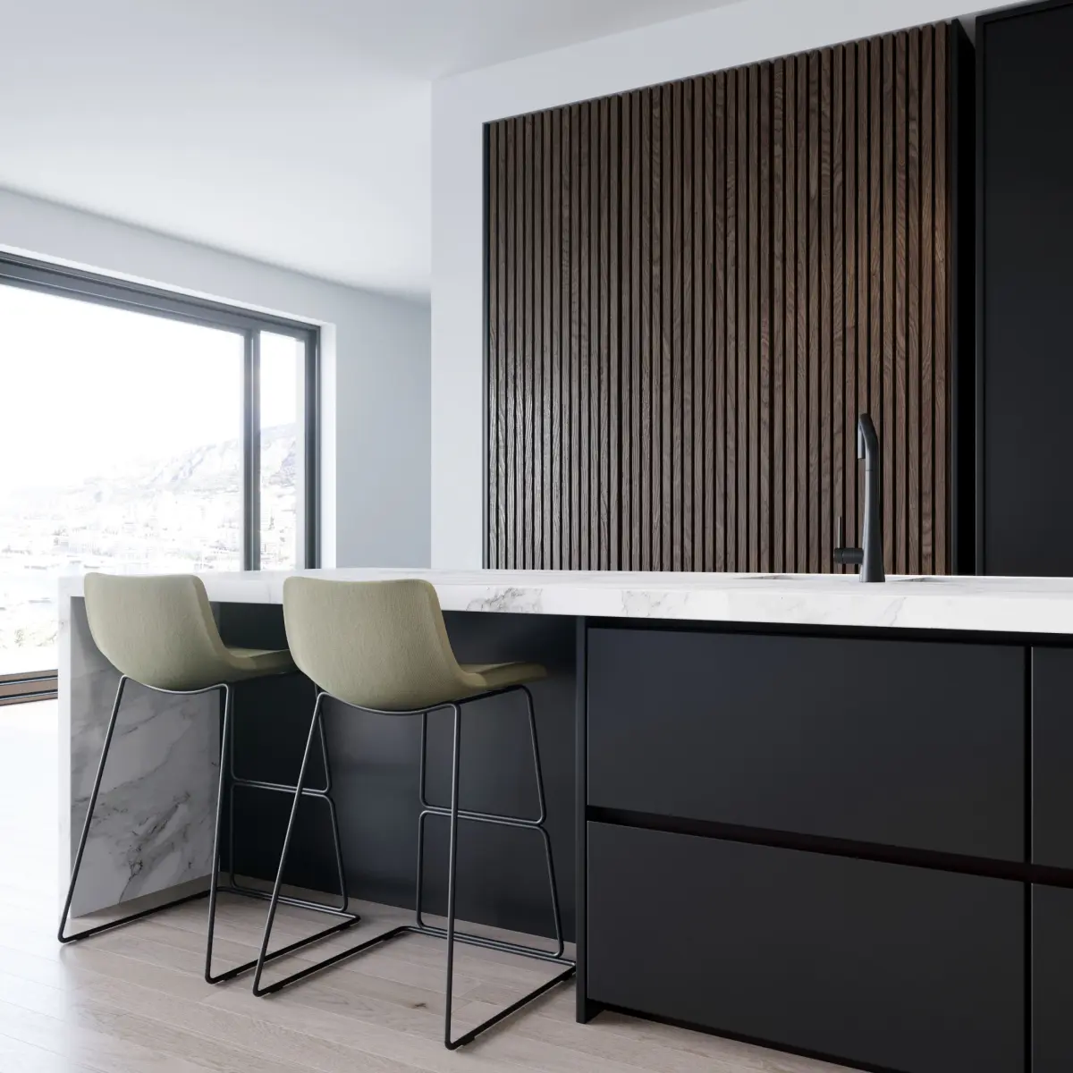 The kitchen is assembled in such a way that you can easily change it to your project.