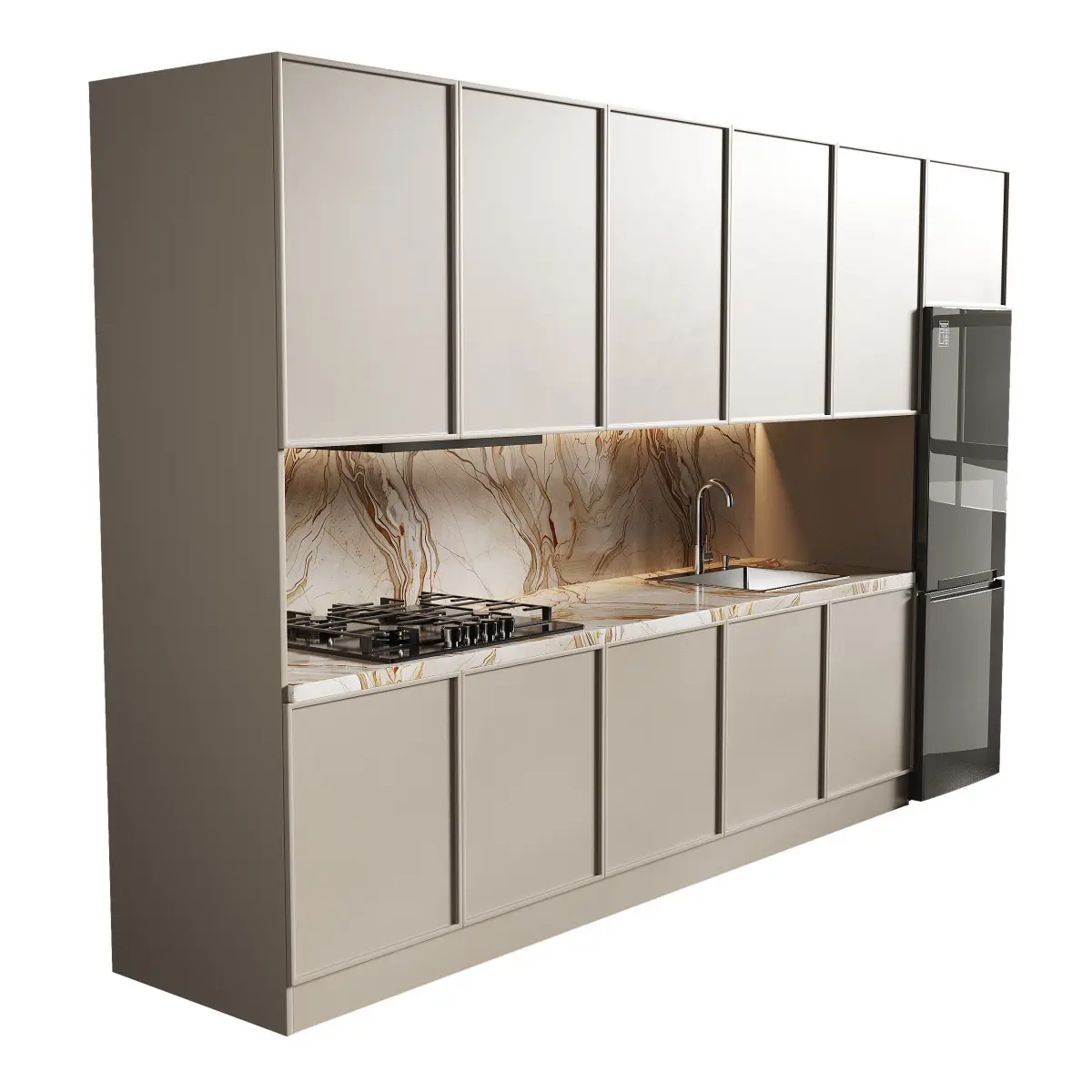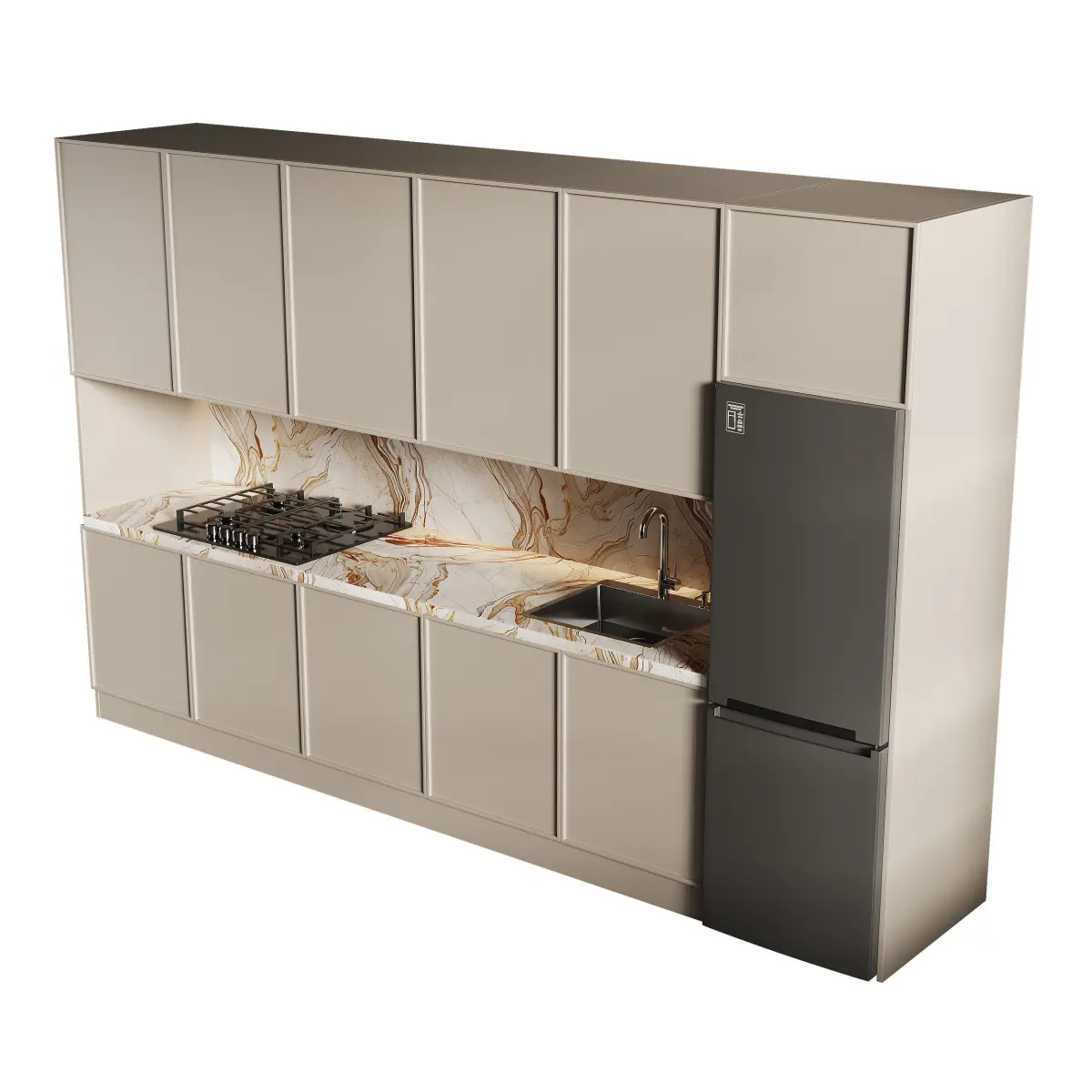 Name: Modern kitchen 14Format: 3Ds Max 2016Export: FBX, OBJ, MTLRender: Corona (7)Polys: 60966Verts: 63216Units: MillimetersDimension: 3591.39 x 762.86 x 2314.77