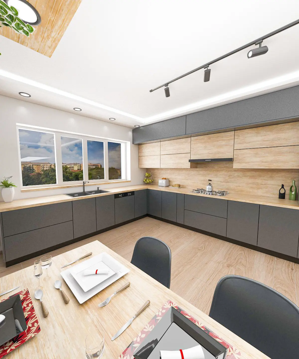 This is a highly detailed and realistic 3D scene of a Kitchen.