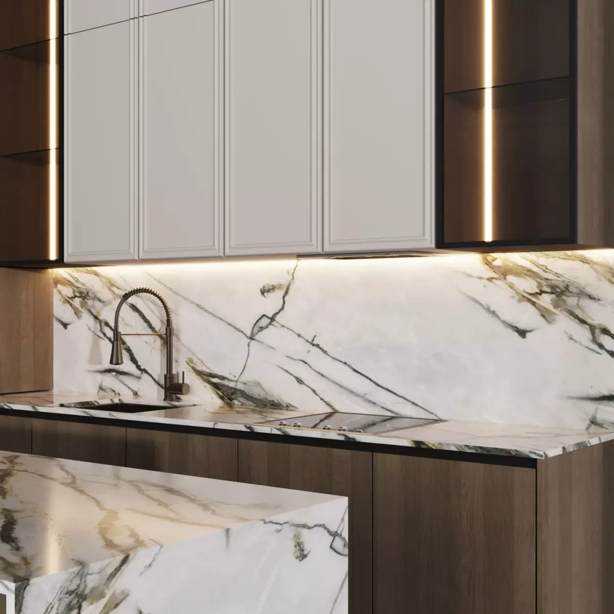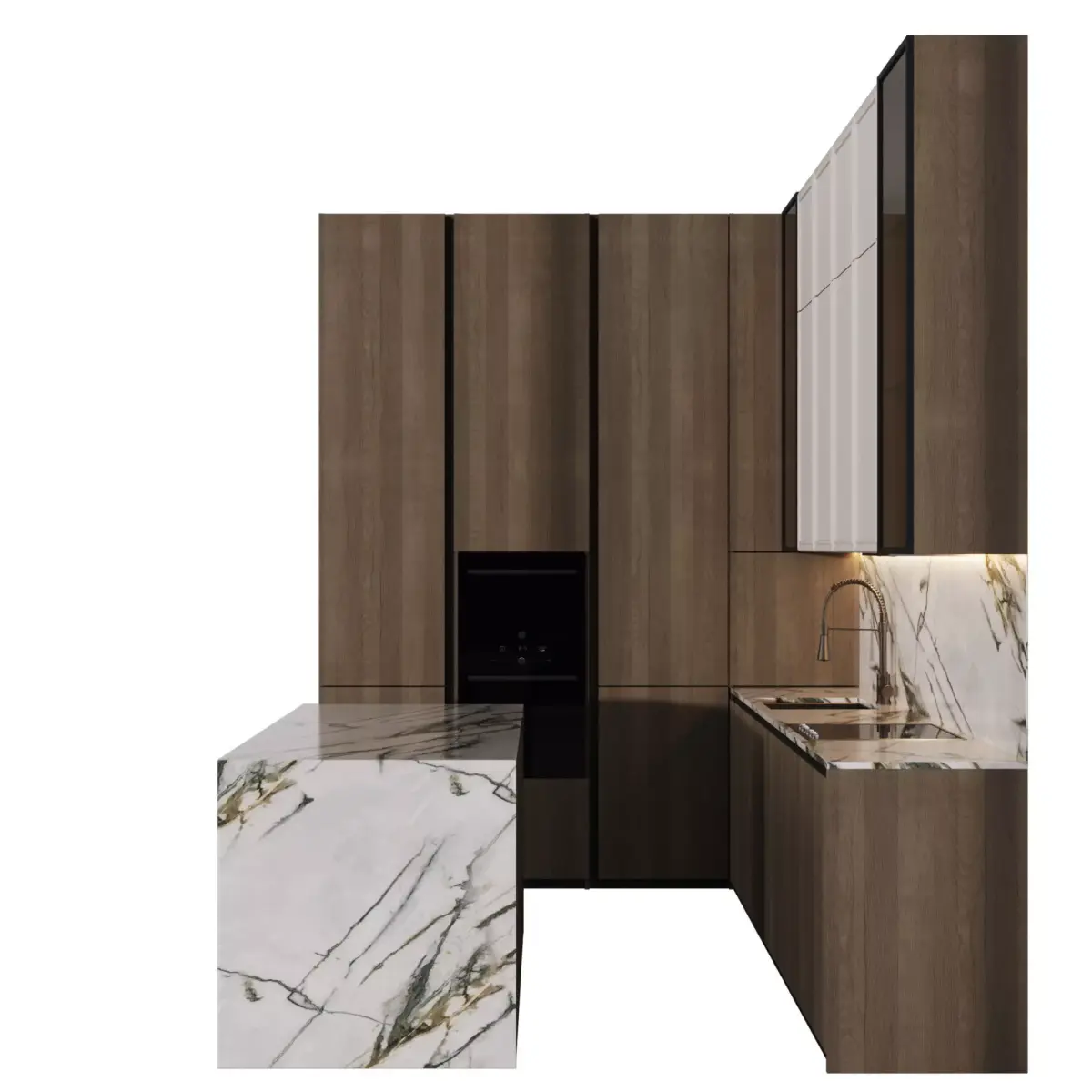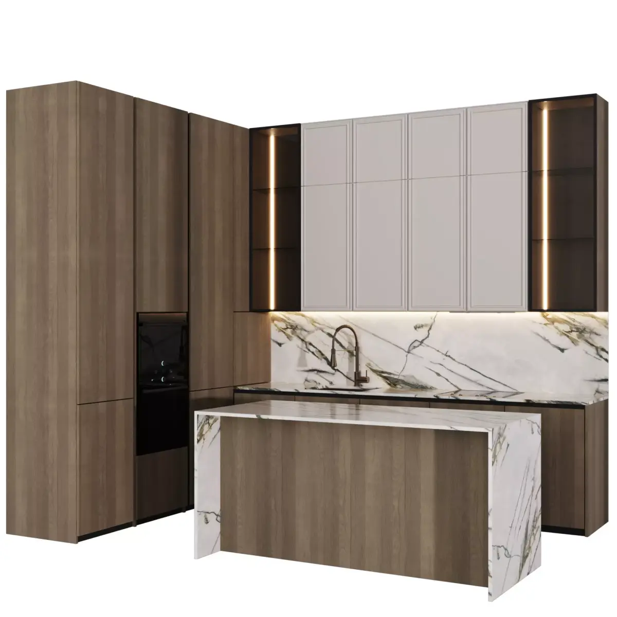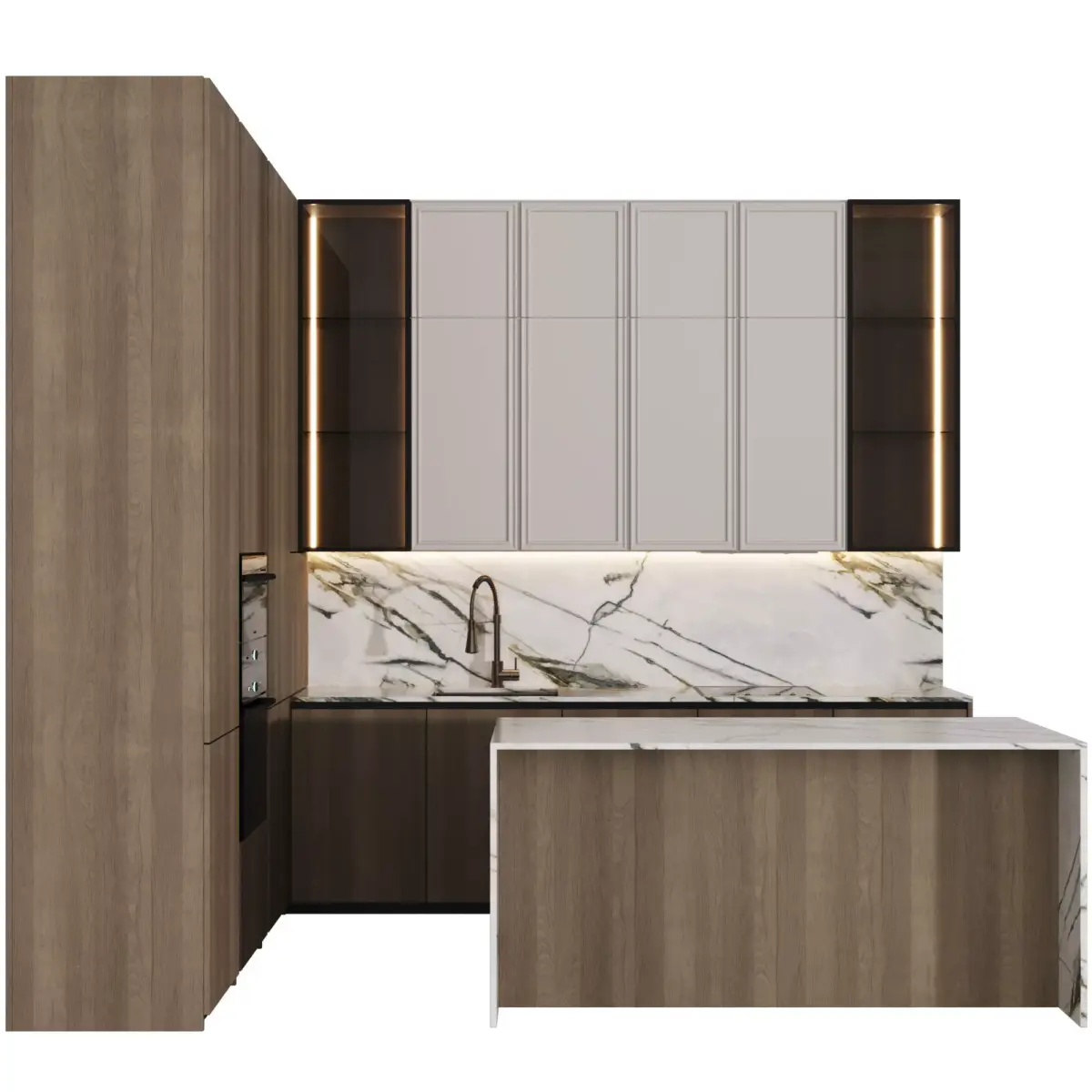 Kitchen with L-shaped island in a modern style.