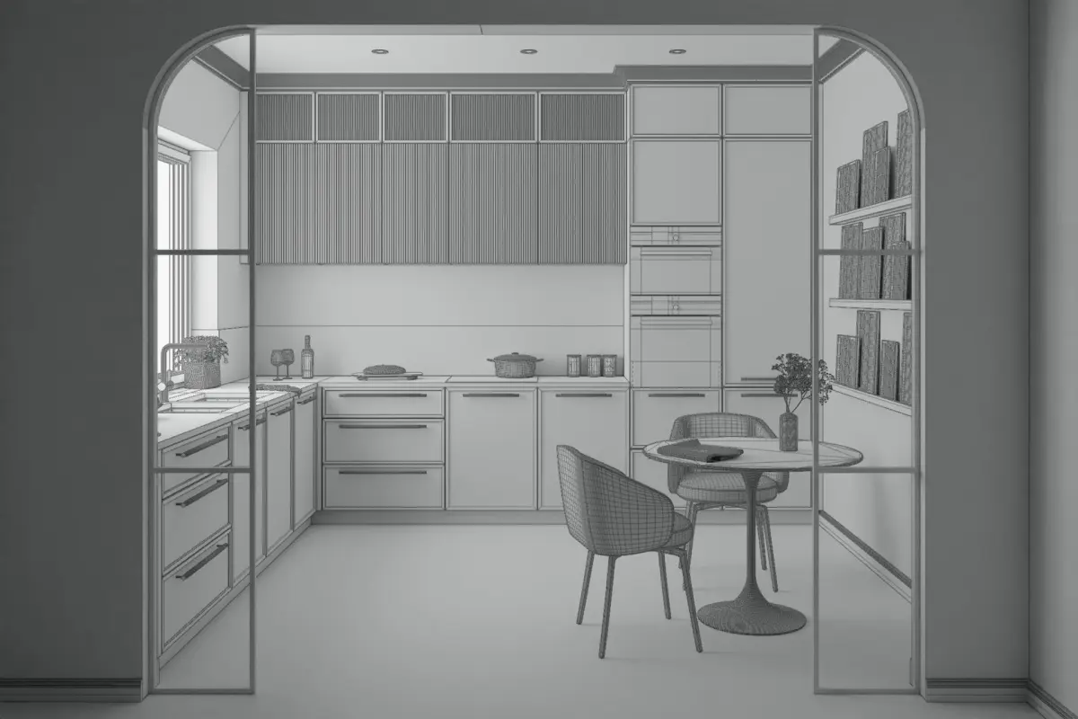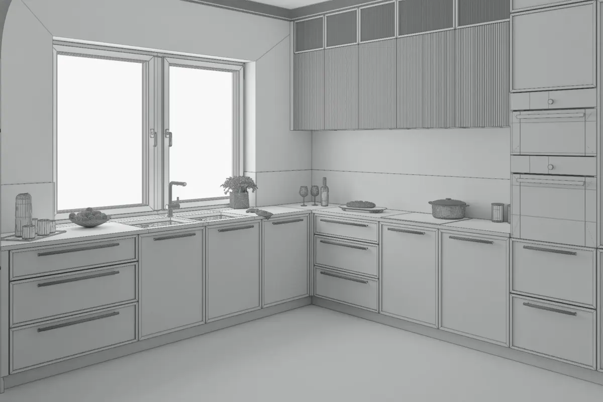The file includes also appliaces, accessories, tableware and furniture as shown the the preview pictures.