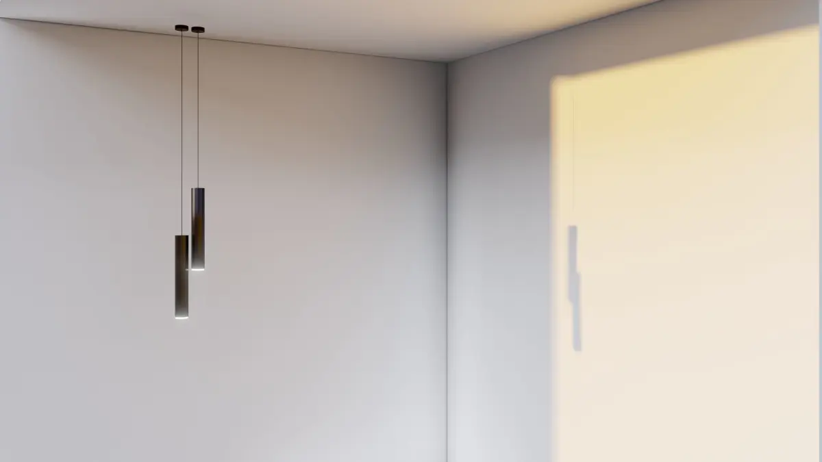 A modern lamp that looks perfect in a bedroom, living room or any other room. The color of the tubular light source can be changed. A lamp hanging from a long ceiling. With its modern appearance, it is suitable for the living room, bedroom, above the bedside table, on the table, behind or above the sofa