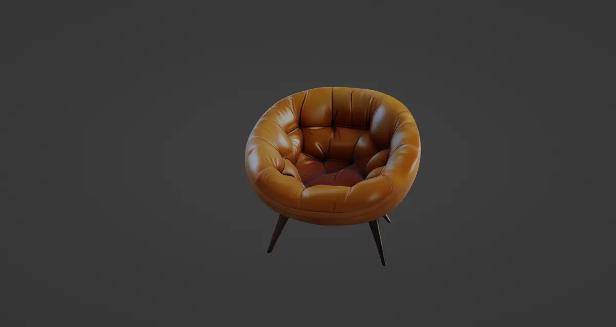 This stylish 3D model represents a contemporary leather accent chair with a mid-century modern aesthetic. The chair features a spherical, bowl-like design with luxurious tufted detailing on the smooth, high-quality leather upholstery. Its vibrant caramel-brown finish exudes warmth and elegance, making it perfect for both modern and vintage-inspired interiors. The softly cushioned surface ensures comfort while retaining a sleek and professional appearance.Supported by three tapered wooden legs, the chair blends stability with minimalist charm. The legs are crafted with dark polished wood, providing a striking contrast to the warm leather tones. The structure and material details are meticulously modeled to give a realistic and immersive feel, ideal for high-quality renders and animations.This 3D model is downloadable in GMB format with textures included, ensuring a seamless experience for integration into your projects. Additionally, it is available in FBX format for broader compatibility with various 3D software. The accompanying texture file highlights the authentic leather grain, natural imperfections, and glossy finish for enhanced realism.Whether you're designing a virtual living room, a stylish office lounge, or an elegant showroom, this model is a perfect addition. Its high level of detail and optimized design make it suitable for both professional and personal use. From architectural visualizations to video game environments, this chair offers versatility and sophistication.