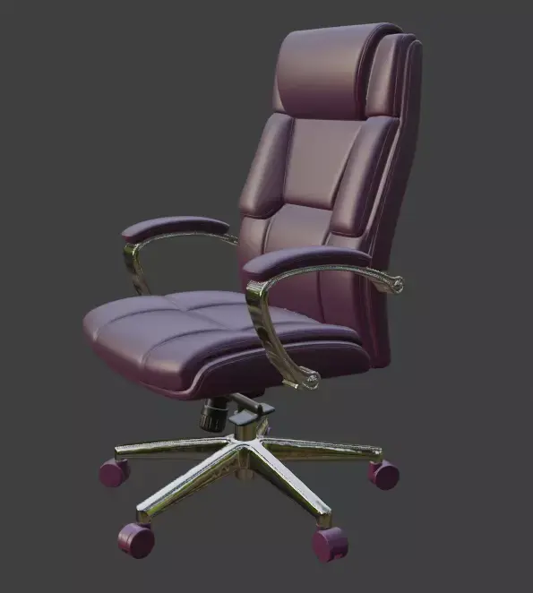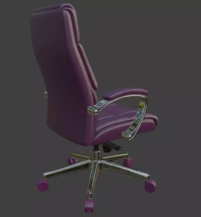 A highly detailed, production-ready 3D model of a premium modern executive office chair with black leather upholstery and polished chrome base. Perfect for architectural visualizations, office interior renders, game environments, VR/AR projects, or high-end product visualizations.This model features clean topology, fully unwrapped UVs, and PBR materials ready for any render engine. The leather material uses realistic textures including high-resolution diffuse, roughness, normal, and specular maps (4K). All parts are properly named and organized in logical groups for easy editing.