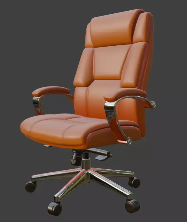 A highly detailed, production-ready 3D model of a premium modern executive office chair with orange leather upholstery and polished chrome base. Perfect for architectural visualizations, office interior renders, game environments, VR/AR projects, or high-end product visualizations.This model features clean topology, fully unwrapped UVs, and PBR materials ready for any render engine. The leather material uses realistic textures including high-resolution diffuse, roughness, normal, and specular maps (4K). All parts are properly named and organized in logical groups for easy editing.Includes adjustable height mechanism, tilt function, and rolling casters — all modeled with accurate real-world scale and mechanical detail.