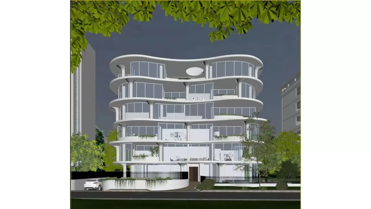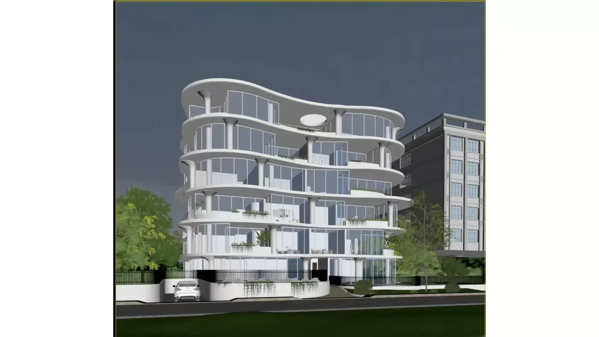 This is a strikingly futuristic modern multi-storey apartment building. Its fluid curved facade breaks away from the rigid squareness of traditional architecture, and the entire structure adopts a pure white color scheme paired with extensive glass curtain walls, creating a light and transparent visual effect. Each floor of the building features open-air balconies adorned with green plants, integrating natural elements into the living space and forging an eco-friendly living experience of sky gardens.The unique curved support columns and layered wave-like structures not only enhance the building’s sculptural appeal but also improve spatial transparency. Surrounded by lush green trees, which echo the building’s nature-centric design philosophy, the structure as a whole embodies a high-end, minimalist luxury urban living aesthetic that coexists harmoniously with nature. It stands as a paragon of the integration of modern architectural design and ecological concepts.
