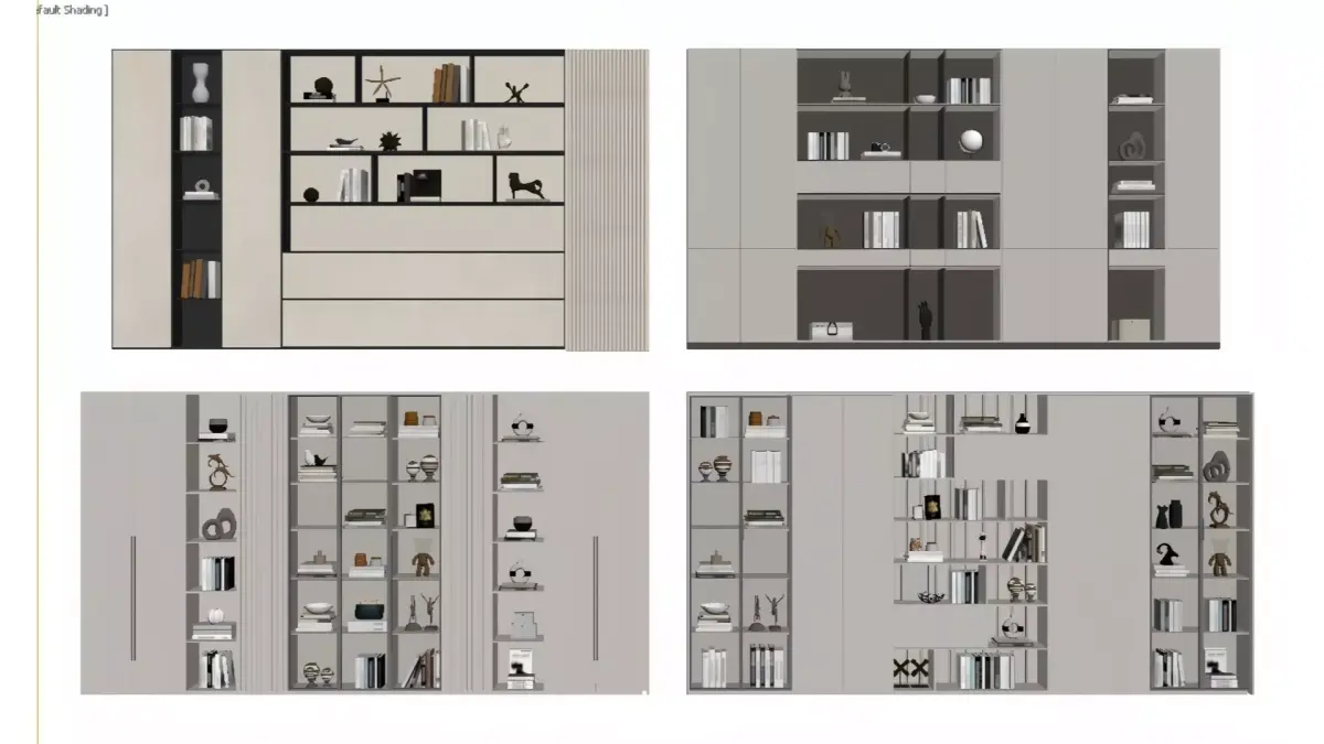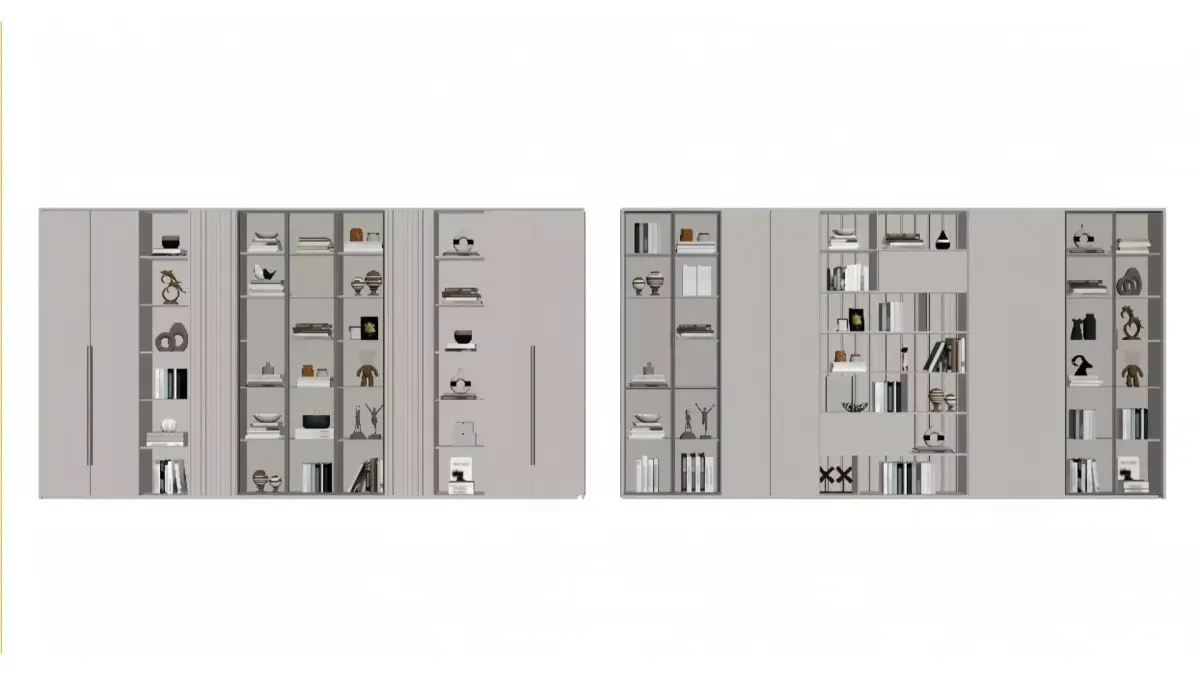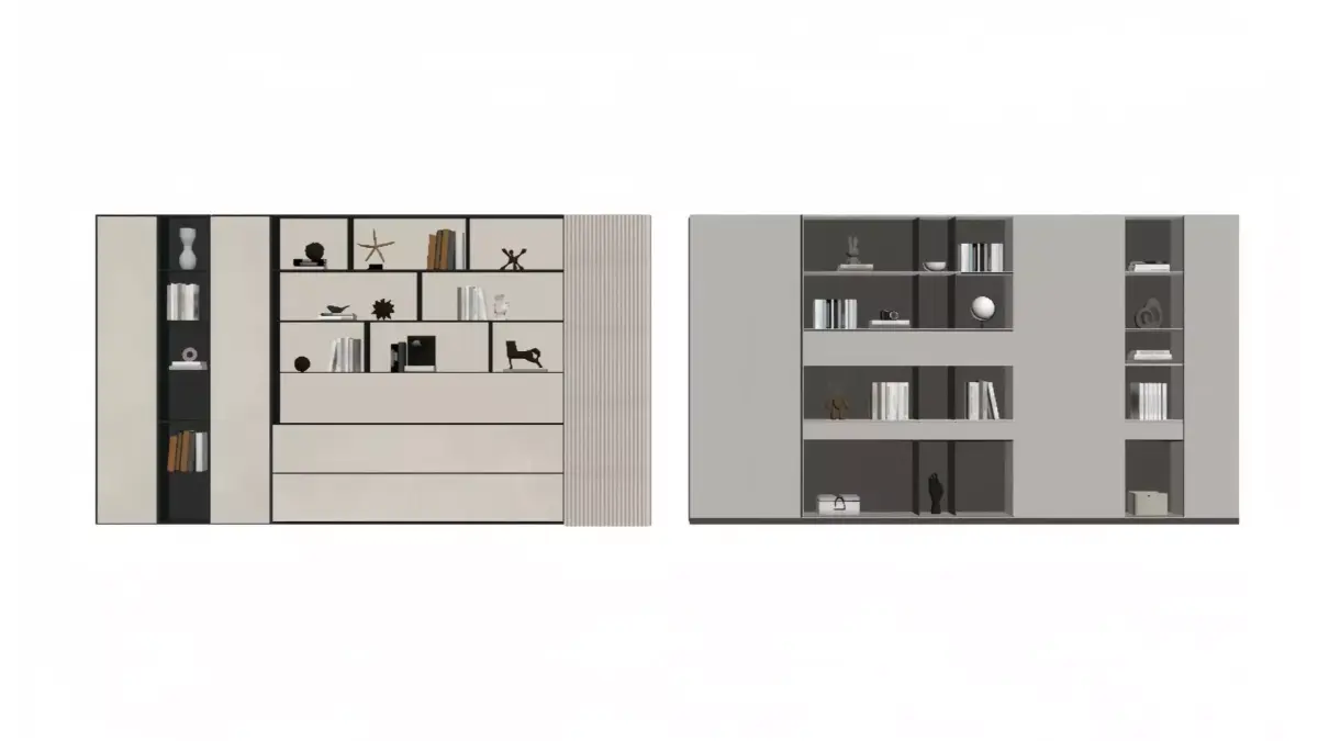 English TranslationThese are a variety of custom-made bookcases/display cabinets in a modern light luxury style. Dominated by light color schemes (off-white and light gray), they adopt a combined design of built-in ambient lighting, glass panels and open compartments, boasting both storage and display functions. The cabinet bodies incorporate sophisticated details such as metal lines and textured panels. When displaying books, ornaments and decorative crafts, the lighting highlights the premium texture. Ideal for the whole-house customization needs of living rooms, studies and other spaces, these cabinets are not only practical but also enhance the elegance of the home.