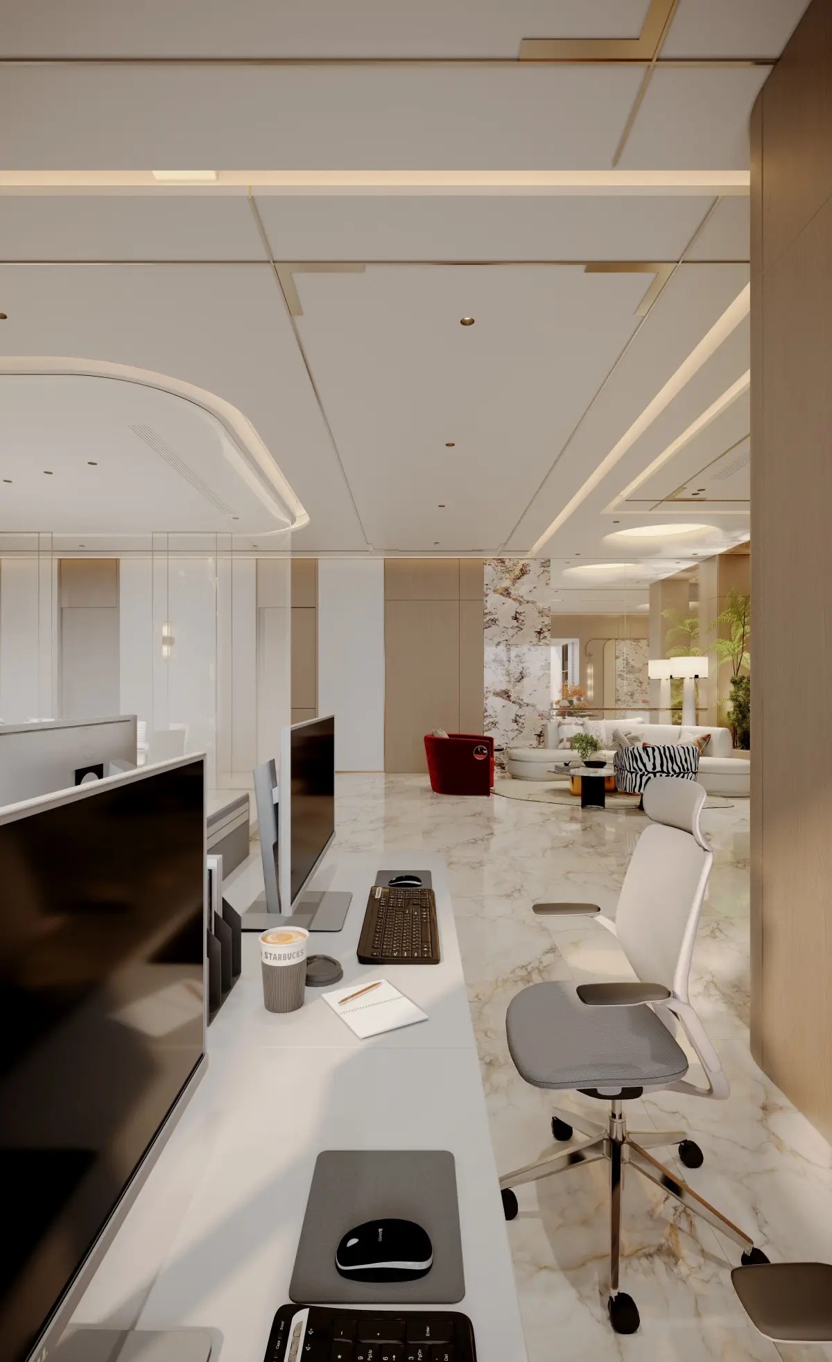 Modern light luxury office, front desk, lobby, meeting room, negotiation area, public office