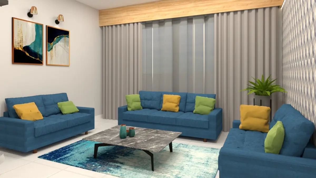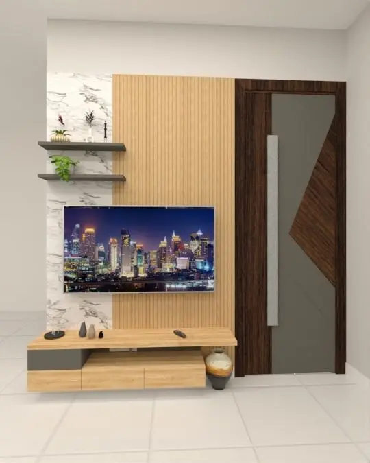 Modern contemporary living room with 2 designs of sofa and a tv unit.