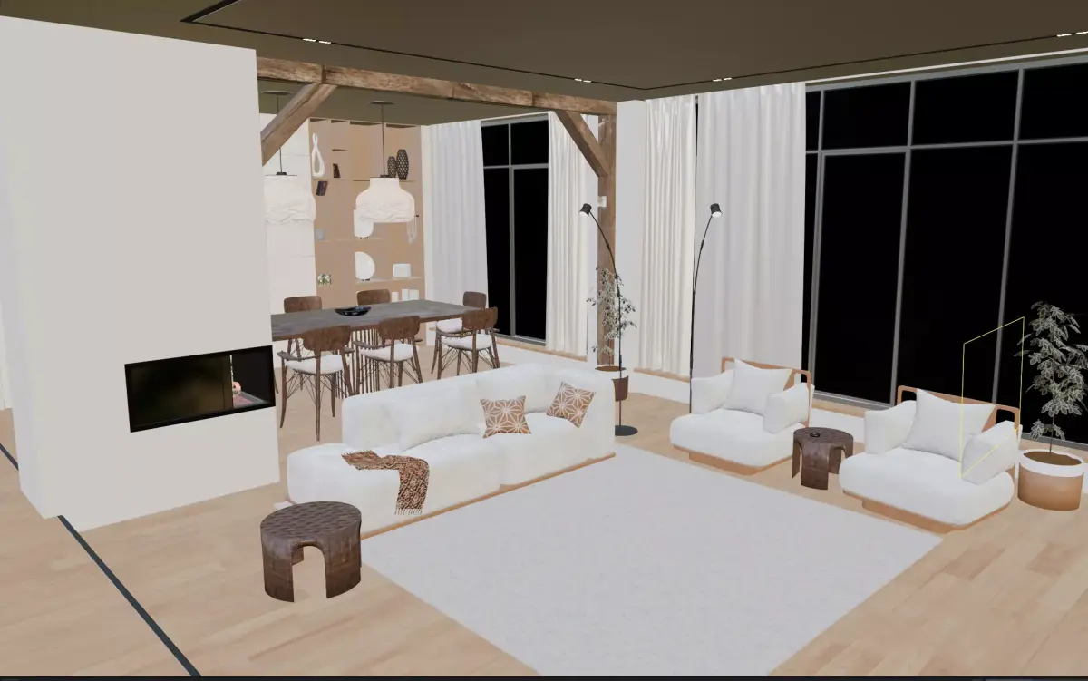 Description:High-quality 3D model of a modern Living Room and Dining Room Interior.The scene includes detailed furniture, materials, and realistic lighting setup.
