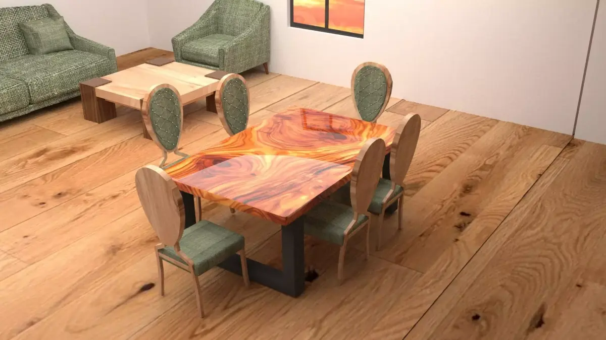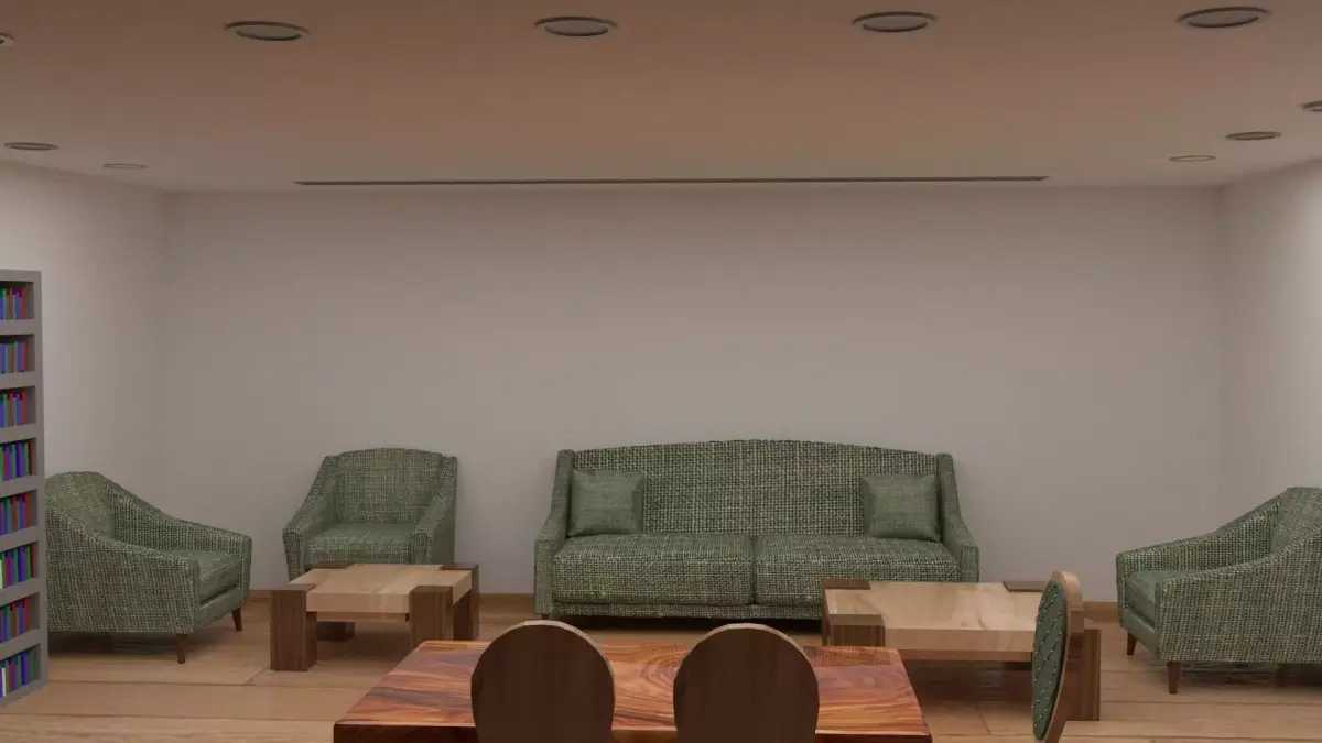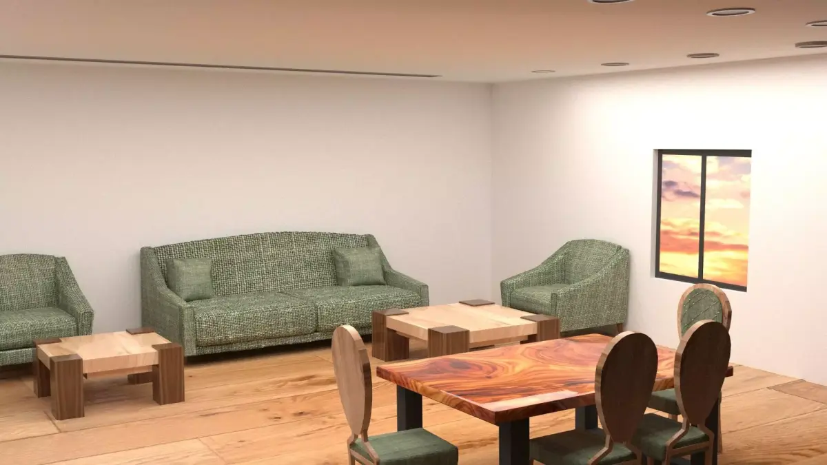 This realistic modern living room interior is designed and rendered in 3ds Max using vrayThe scene includes detailed models of a green sofa set, armchairs, wooden coffee tables, dining table with chairs, bookshelf, and a window environment.All materials and textures are included, ready for rendering.Perfect for architectural visualization, design projects, and 3D animation use.