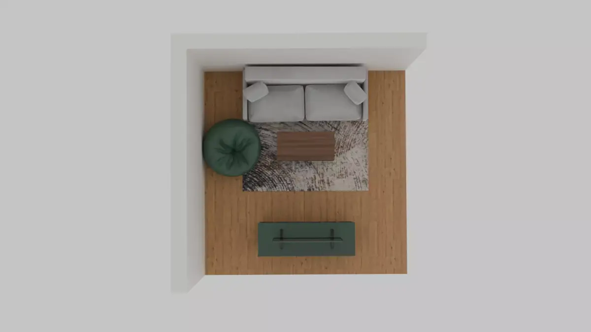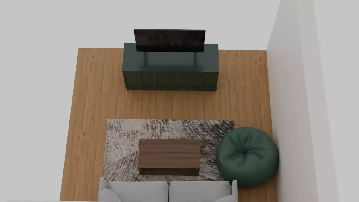 A modern living room interior setup designed for architectural visualization, real-time applications, and interior design previews. The scene includes a sofa with cushions, TV unit with television, coffee table, bean bag chair, area rug, wooden flooring, and a minimal wall layout.All assets use baked PBR texture maps and are optimized with clean topology and correct real-world scale. Ideal for use in game engines, etc. Delivered in GLB format.