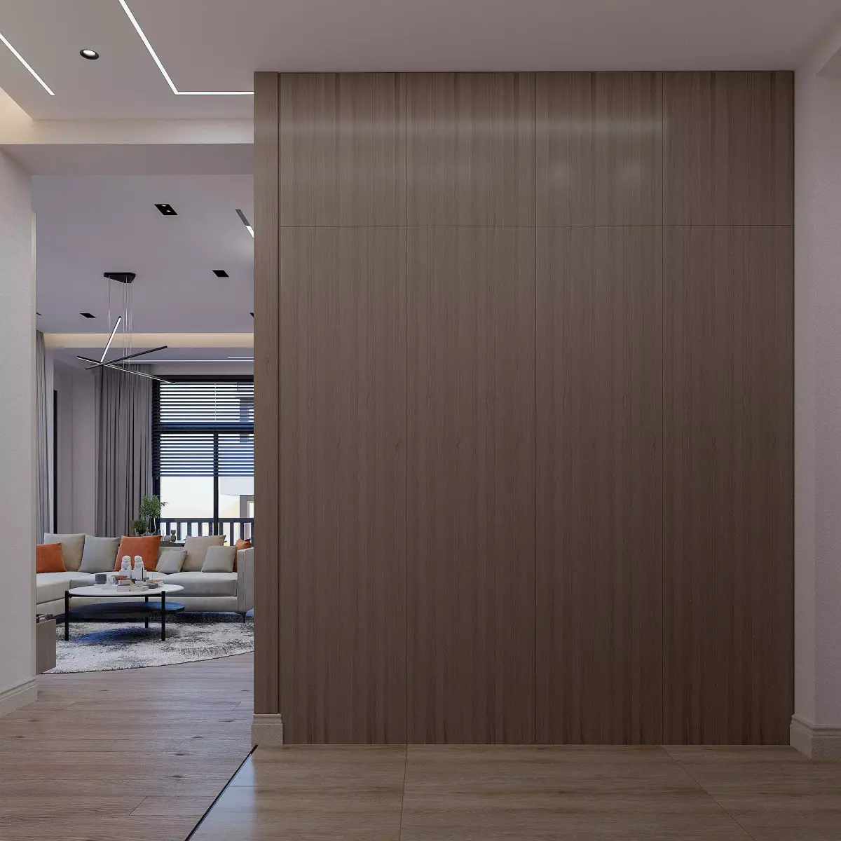 Modern Living Room, Kitchen & Hall – Interior Design Scene