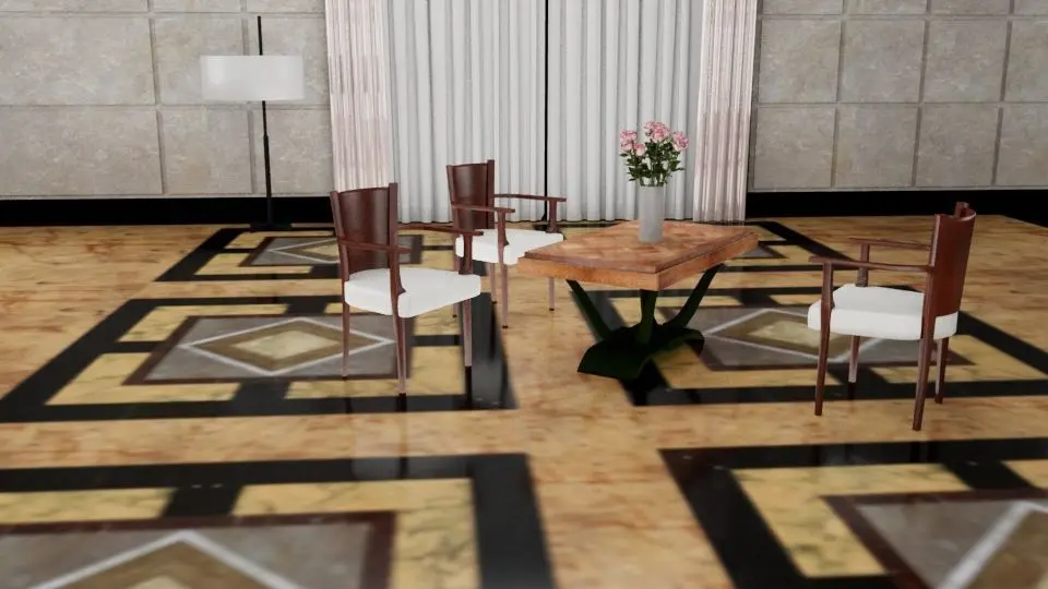 This detailed and high quality 3D model showcases a modern, luxurious lobby space, ideal for architectural visualization, interior design projects, or virtual environments. The space features: