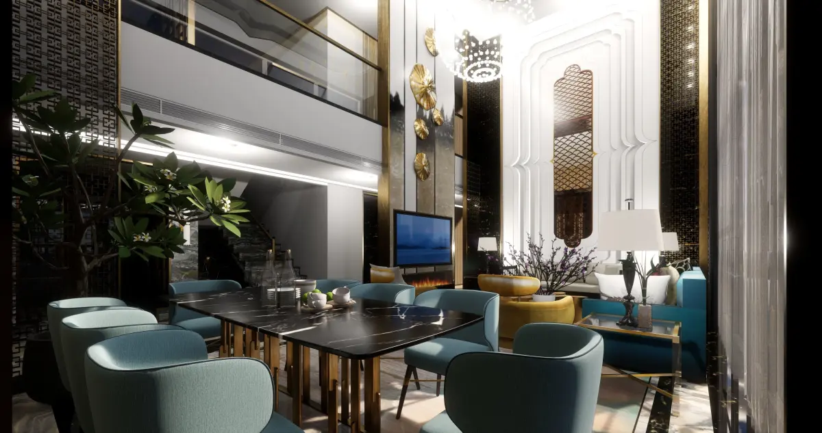 This is a contemporary attic bedroom that exudes personality. Simple, modern furniture in black and gray complements the interior. A reading corner was placed by the window, with a modern chair and a minimalist floor lamp.The work area features a simple black desk and an swivel chair. A modular sofa in the corner is a comfortable spot for watching computer movies.The doors in dark gray lacquer finish create a good contrast with the wood and reflect the space.