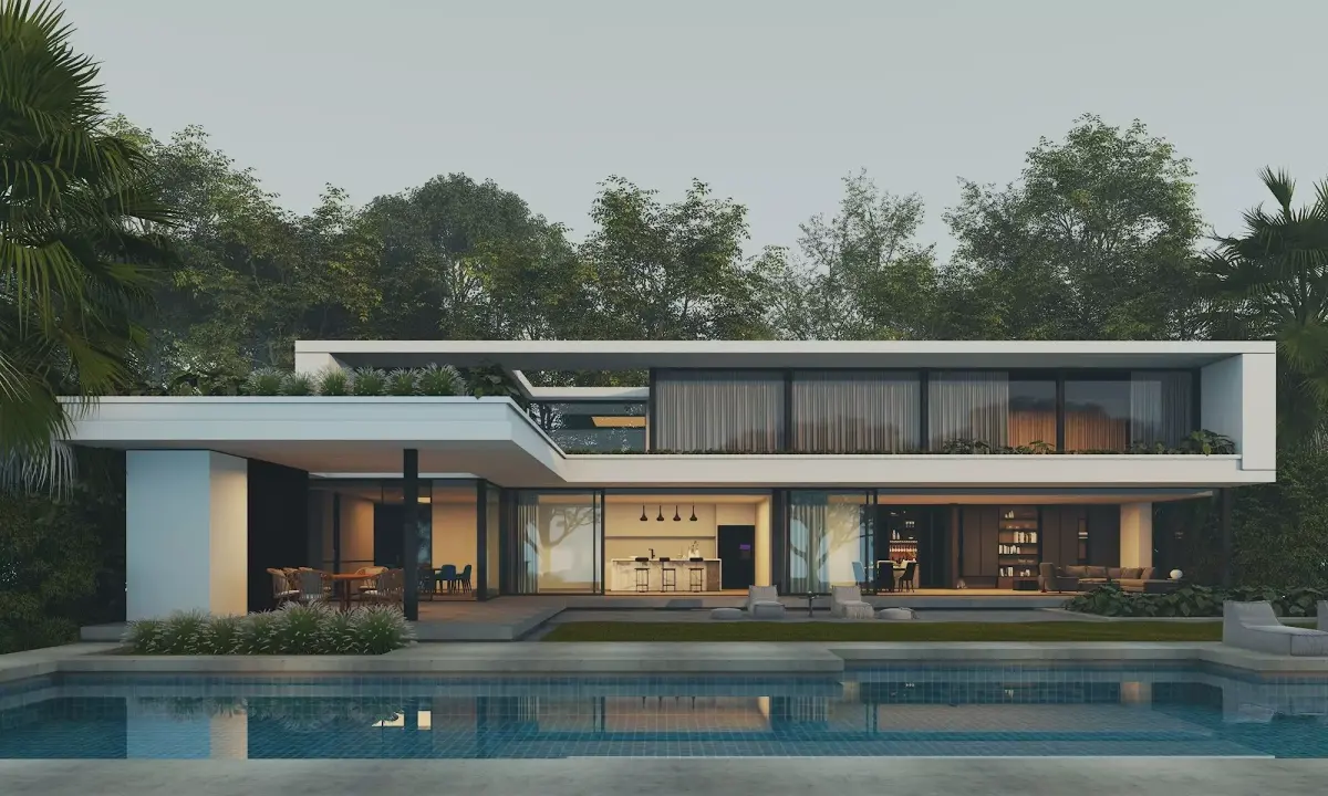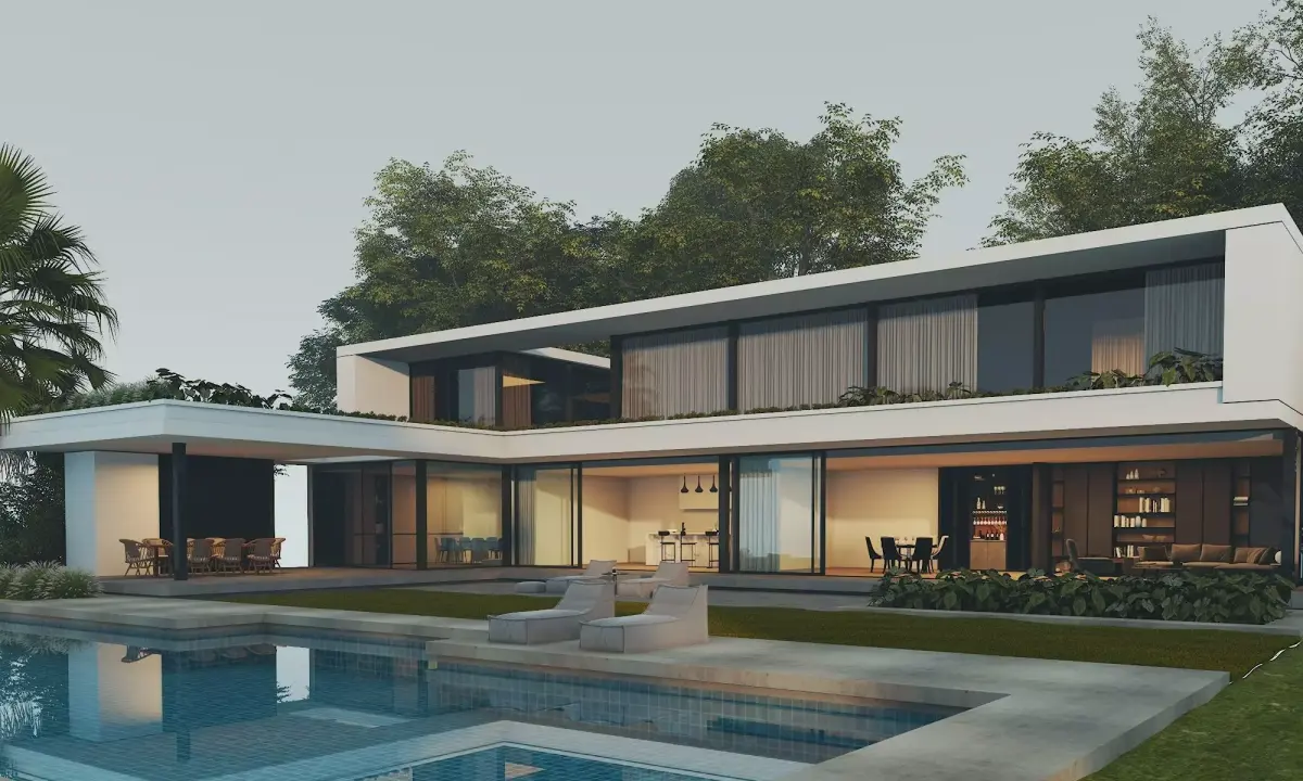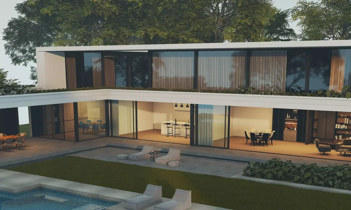 Luxury Villa, Minimalist House: Modern Luxury Two-Story Villa 3D Model, designed specifically for architectural visualization, real estate marketing, and exterior rendering projects.This building features a clean, modern design with large floor-to-ceiling windows, a minimalist concrete structure, an open terrace, and a modern swimming pool integrated into the landscape. The interior spaces are clearly visible through the transparent glass, making this model ideal for day and night rendering, cinematic shots, and walkthrough animations.All elements are meticulously modeled with attention to proportion, realistic materials, and professional architectural details.Perfect for architectural visualization, urban scenes, residential projects, real estate presentations, and game environments.