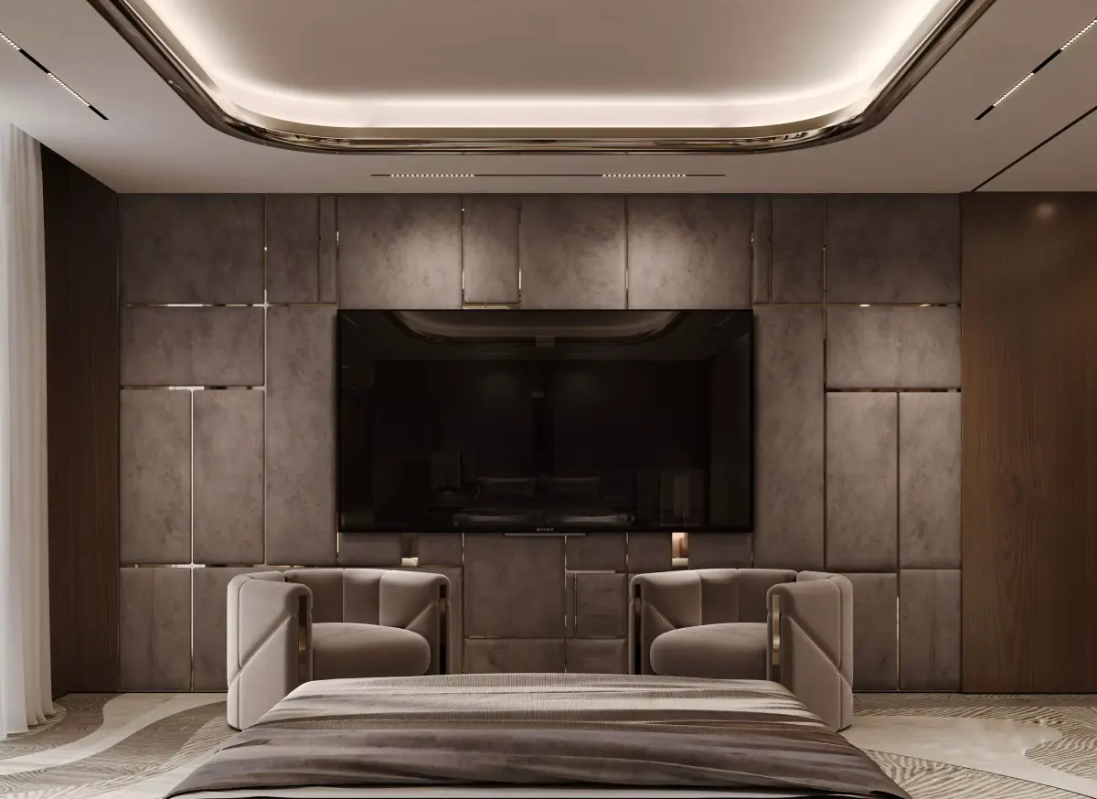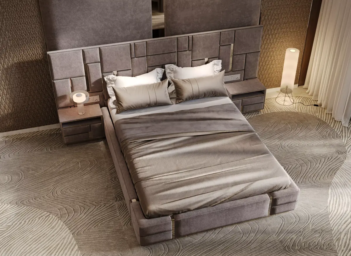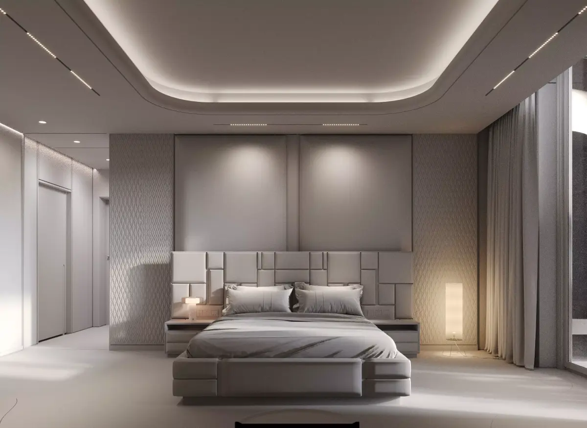 A luxury guest bedroom interior inside a high-end villa.Designed with elegance, comfort, and realism in mind.This 3D scene includes high-quality furniture, lighting setup, and accessories.Modeled in 3ds Max and rendered with Corona.Ideal for architectural visualization and interior design presentations.