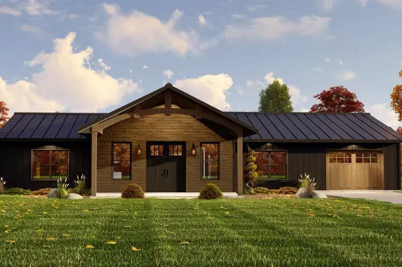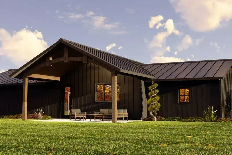 Elegant modern façade with a mix of textures and balanced proportionsInviting covered patio or verandah for outdoor relaxationClean roofline and soft contemporary palette enhancing overall aestheticsAmple window design to bring in natural light and ventilation