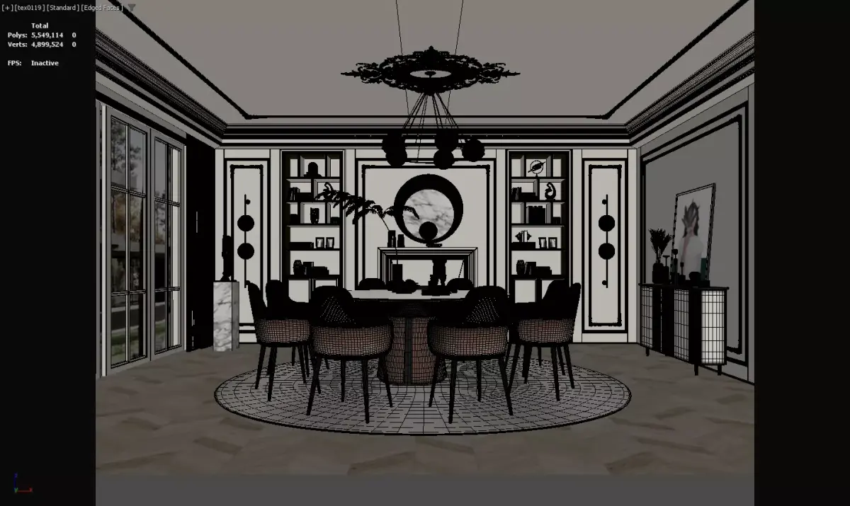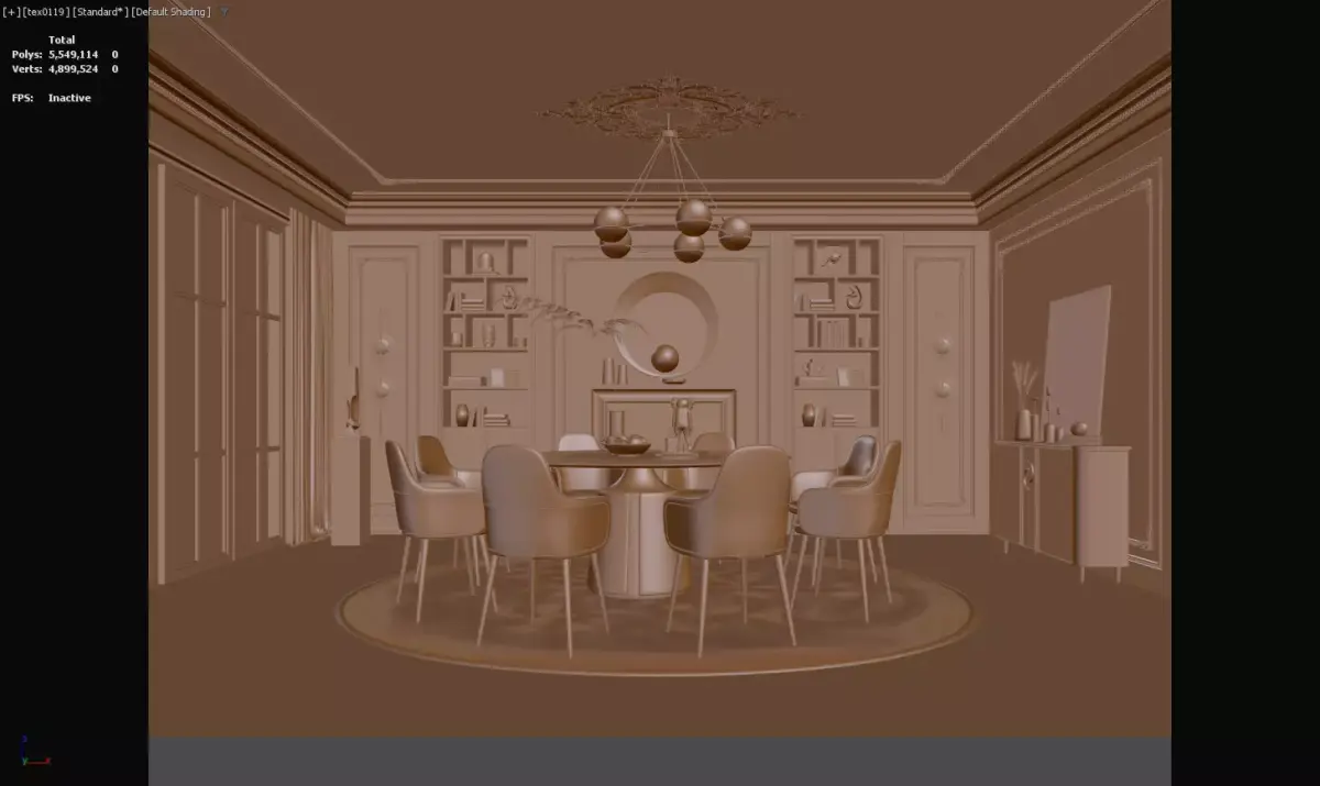 3D model of a modern luxury dining room with elegant furniture, artistic lighting, and refined decor. Ideal for high - end home interior design, creating a stylish and sophisticated dining space.