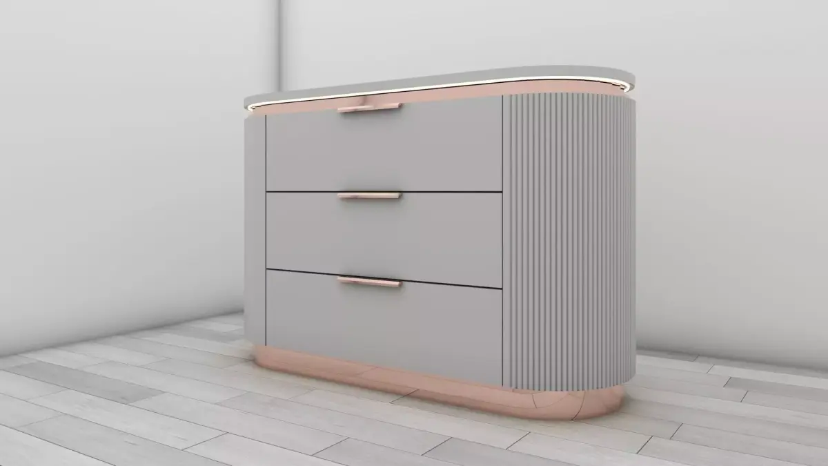 Add a touch of elegance to your 3D interiors with this Modern Luxury Drawer Cabinet — available in two stunning variants: Gold and Copper.This design combines smooth curves, premium materials, and ambient lighting to create a sleek, high-end look perfect for bedroom, living room, or showroom renders.