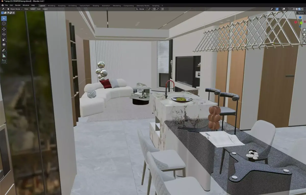 Modern Luxury Living and Dining Interior 3D model