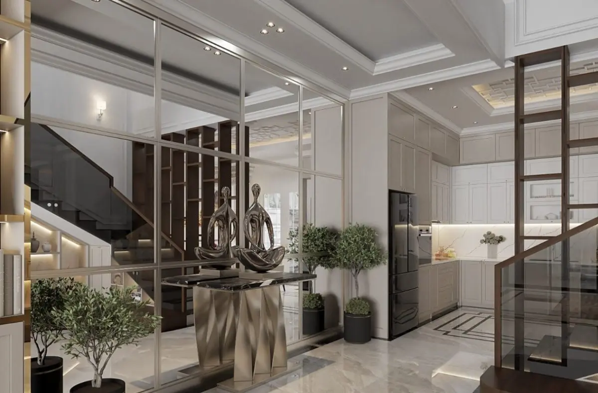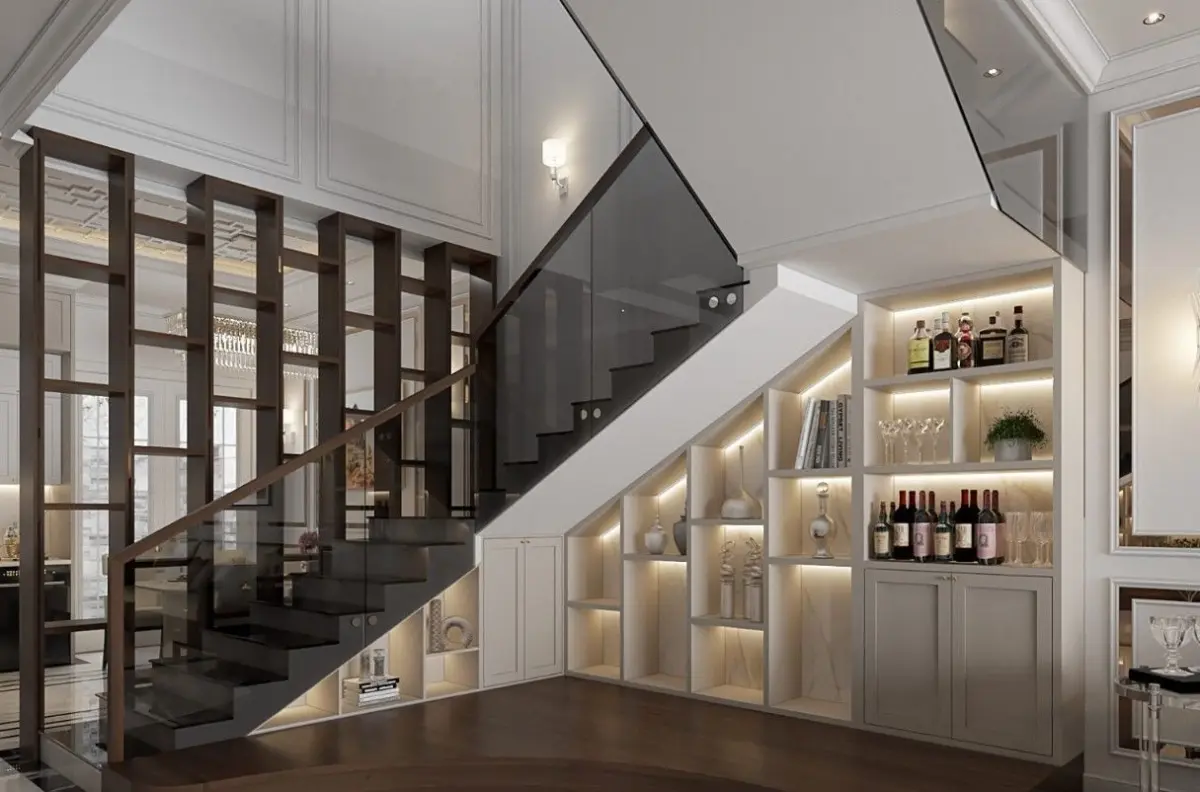 Sketchup model contains first floor including Modern luxury Living room , kitchen and a stair with a very modern design containing storage place luxury interior design sketchup model 2022 version with enscape render rendered shots are included