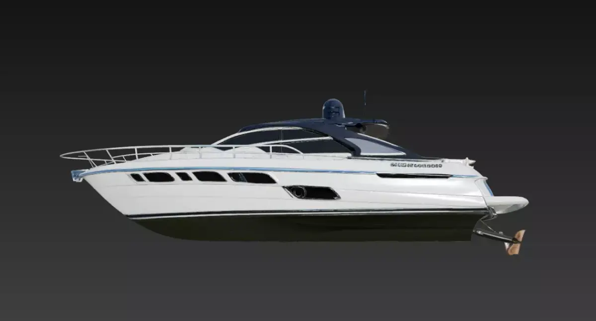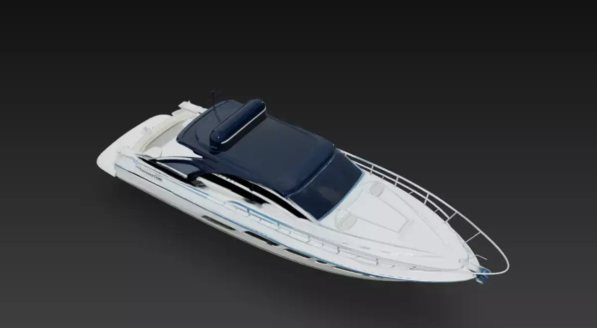 Detailed exterior elements such as stainless railings, radar unit, tinted cabin roof, cockpit layout, side windows, and refined hull curvature provide a strong sense of realism while maintaining an organized and production-ready geometry. Its streamlined silhouette makes the model suitable for both close-up product visualization and wide cinematic marine scenes.
