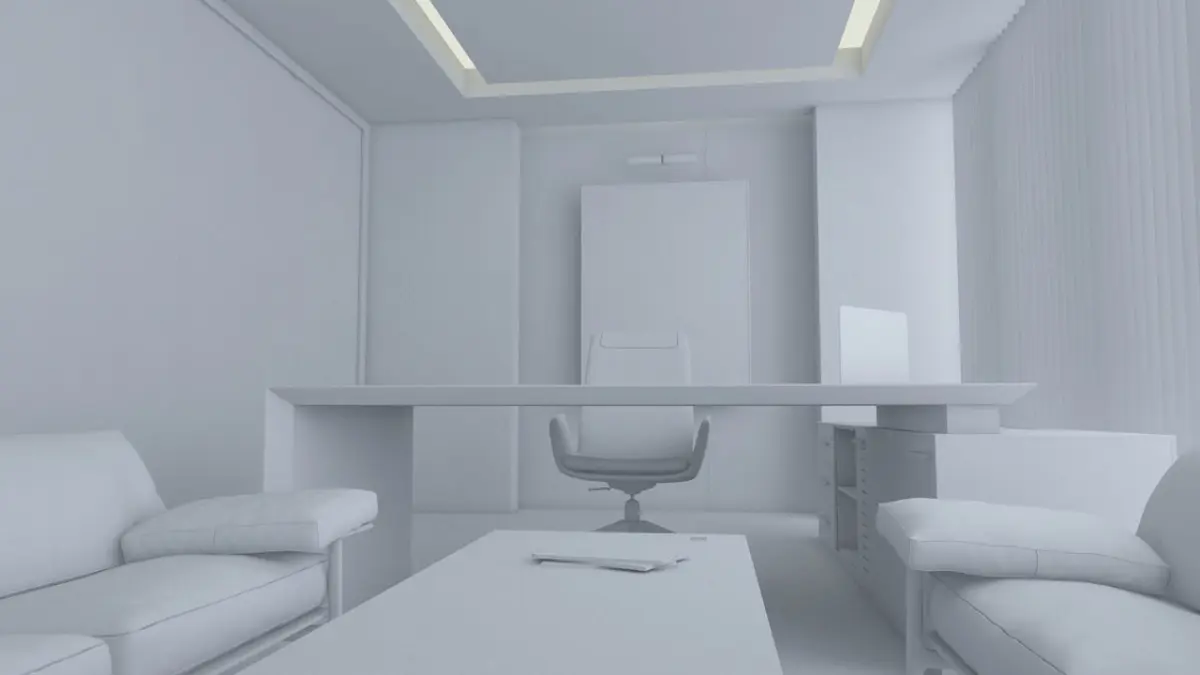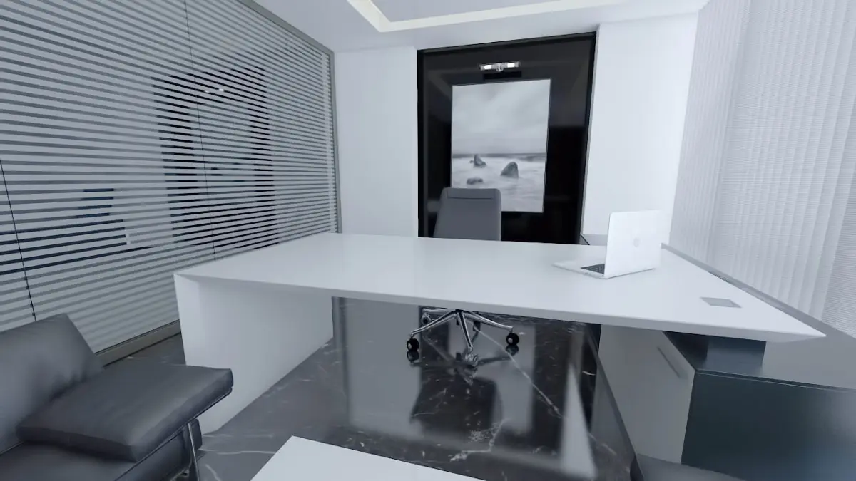 Modern, Realistic OfficeIt is modeled for a large company in Istanbul and the copyright belongs to the buyer.It has modern interior design. The office furniture is covered with matt white and matt anthracite lacquer. The floor is marble. It is a manager room with a glass partition.You can use whatever work you want.