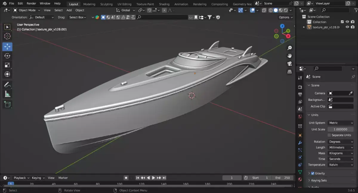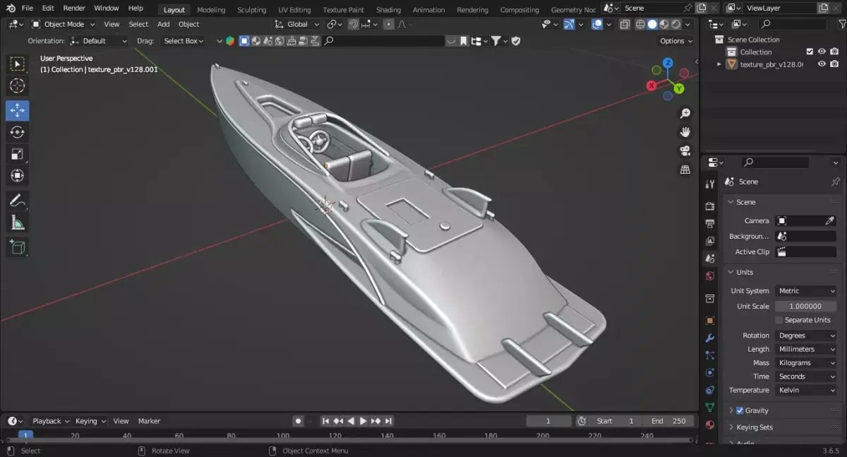 3D printable model of a modern luxury speed boat featuring a smooth streamlined hull, detailed cockpit, and realistic proportions. Designed with clean geometry, this model is fully optimized for 3D printing and ideal for hobbyists, collectors, and marine-themed projects.