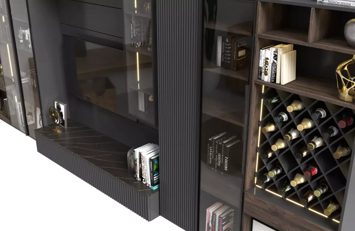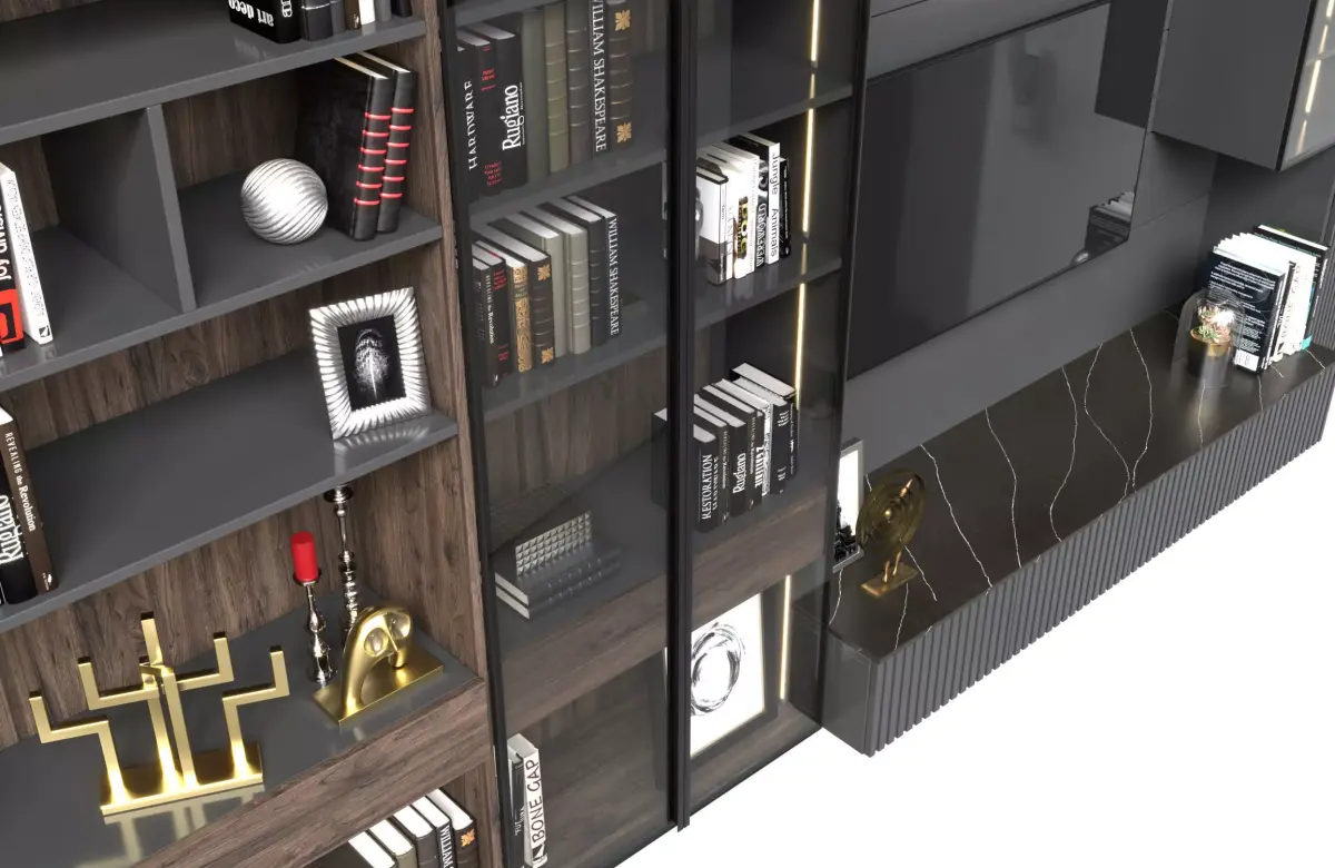 ** Important Note:**Decorative items shown in preview images (books, vases, sculptures, pictures, candles, plants, bottles, and all accessories) are NOT included in the downloadable files. Only the TV wall unit itself is included.
