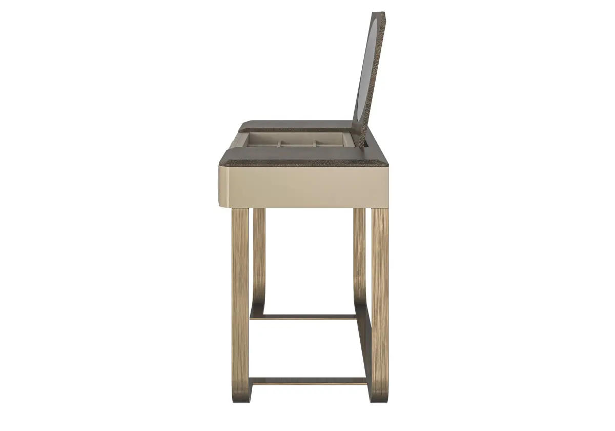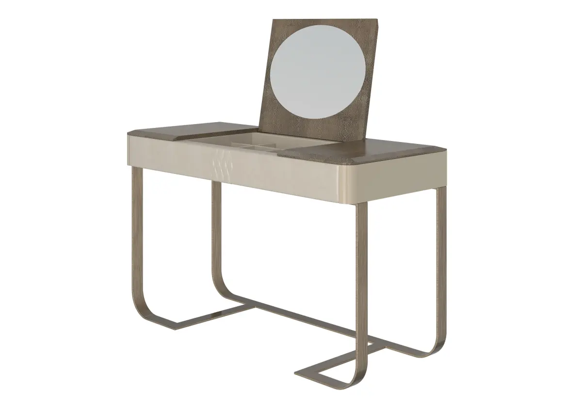 Modern Luxury Vanity by Modenese is a perfect blend of contemporary sophistication and practical design. This stylish vanity features a central oval mirror that can be elegantly closed down, seamlessly integrating function with form. The front boasts a refined decoration that enhances its modern appeal, while the legs are designed with simplicity and elegance in mind.