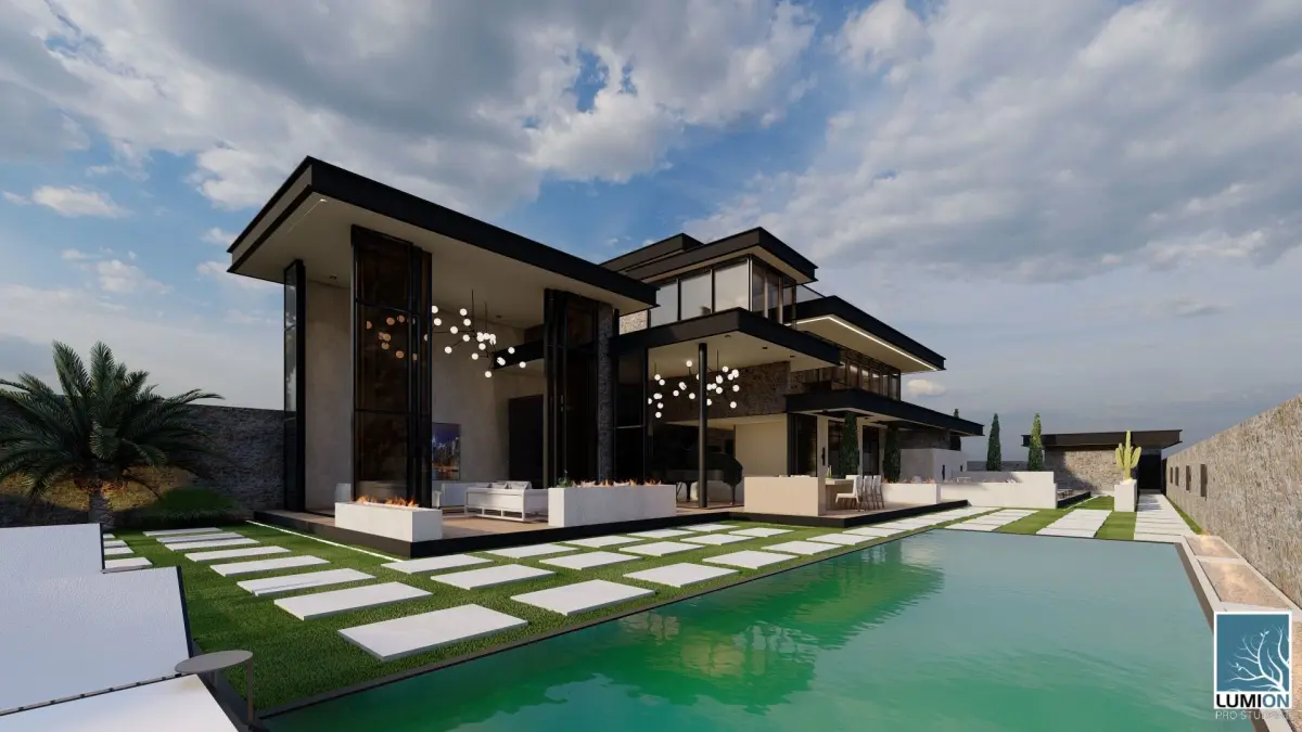 Discover this stunning 3D model of a modern luxury villa, perfect for high-end architectural visualizations. This model features a sleek contemporary design with expansive glass walls, minimalist geometry, and stylish landscaping including a pool area. Designed in Lumion, this model is ideal for creating photorealistic renders for your residential architecture projects. Whether for architectural firms, real estate promotions, or personal projects, this villa 3D model offers a visually appealing and functional layout that showcases luxury living.