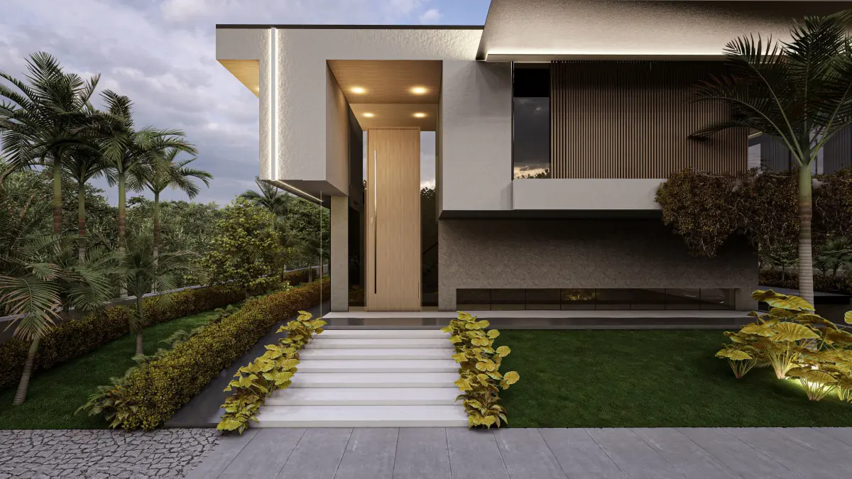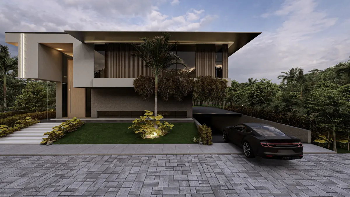 Description:This 3D model presents a modern luxury villa exterior designed with minimalist aesthetics and high-quality detailing, making it perfect for use in architectural visualizations and luxury real estate presentations. The model features clean lines, natural materials, and elegant landscaping, providing a realistic and sophisticated environment.