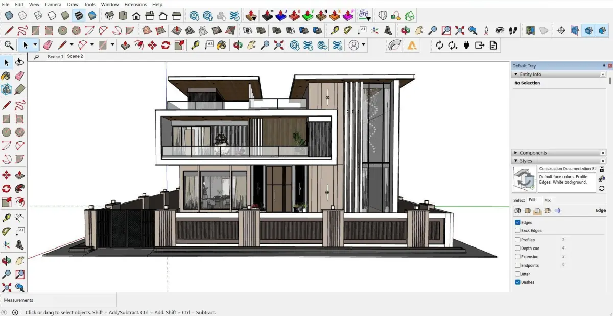Key Features:Luxurious Modern Facade: A striking combination of high-end materials—concrete, metal, glass, and stone—creating a refined exterior.Grand Entrance & Spacious Layout: Double-height spaces, large windows, and elegant proportions for a sense of grandeur.Low-Poly, High-Detail: Optimized for smooth performance in real-time applications, while delivering stunning realism.Fully Textured & Pre-Configured: Includes high-quality textures and materials ready for immediate use.Included Files & Formats:SKP (SketchUp): Fully editable model with materials and textures applied.OBJ & FBX: Exported with standard textures (requires UV adjustments in external software).3DS: Low-poly model with standard textures (UV mapping adjustments may be needed).DAE (Collada): Universal compatibility for various platforms.Wireframe Preview: Included for clear visualization of structure and geometry.Materials & Textures:Premium PBR Textures: High-resolution materials for concrete, metal, glass, and stone, ensuring realistic surface detail.UV Mapping for Exports: Standard textures included for export formats (UV adjustments required for precise application).Luxurious Finishes: Meticulously crafted materials to reflect modern luxury and sophistication.Scene & Rendering Setup:Pre-Configured for Rendering: Ready to render in SketchUp and Twinmotion, ensuring professional results with minimal setup.Lighting Setup: Optimized natural lighting to enhance the materials and textures, highlighting the villa’s luxurious design.Important Notes:UV Mapping Required for Exports: OBJ, FBX, and 3DS formats may need adjustments for correct texture alignment.Organized Structure: Objects are named and grouped logically for easy customization.No Pre-Set Cameras: Add custom camera angles and lighting for tailored rendering results.Thank you for choosing this model! If you find it helpful, please leave a rating—your feedback helps us continue delivering premium 3D models for your projects.