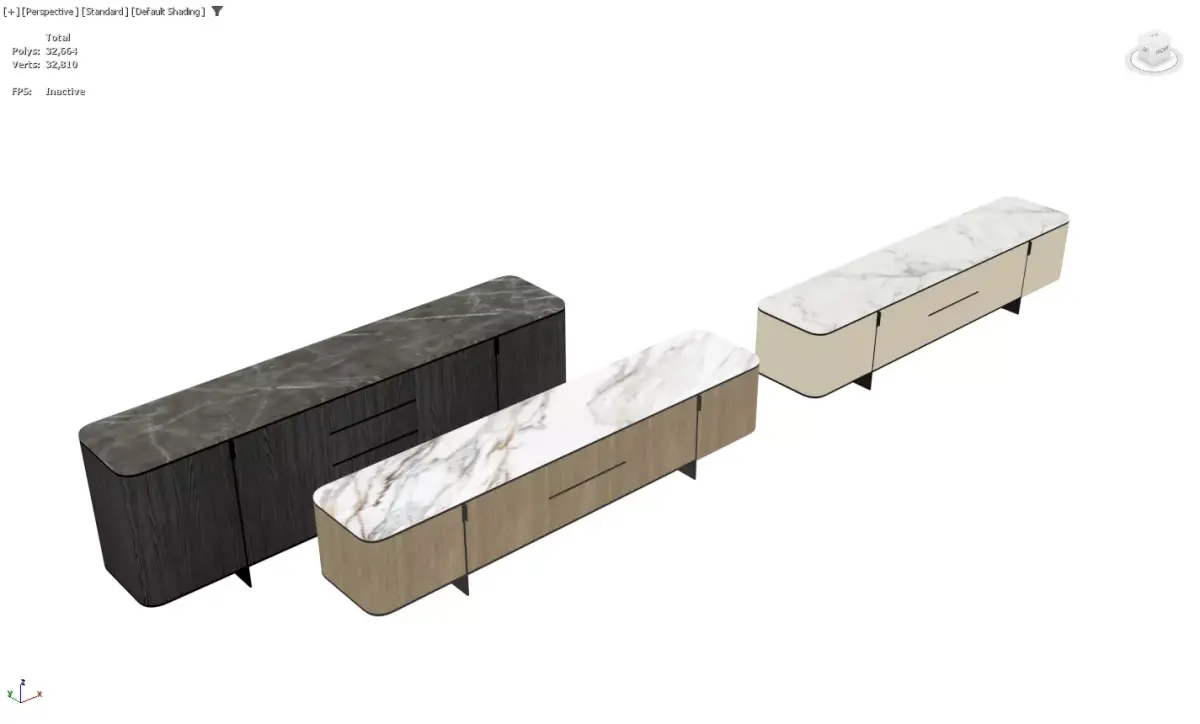 A collection of modern TV consoles featuring marble tops (white veined pattern) and cabinetry in varied finishes (light neutral, dark wood, light wood). Designed with sleek, minimalist lines, integrated storage (doors + drawers), and slim metallic bases, these pieces blend high-end materials with functional design to complement contemporary living spaces.