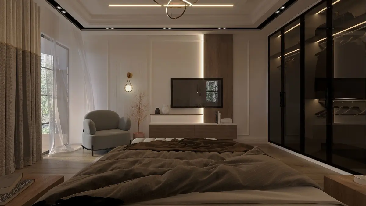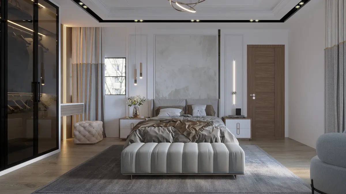 This is a bedroom interior scene with natural light setup, ready to render with 3dmax 2016 ( corona render )