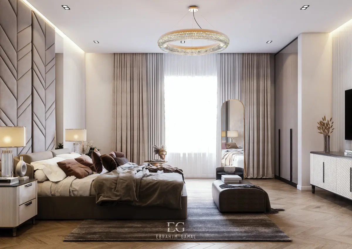Modern master bedroom , with very simple design , clean and elegence , 3ds max file clean materials and modeling , all editpoly , i used in this scene pro models not free all materials are vray materials, its all pro furniture the file is ready to drop in any scene or any design you want just pick models from it and materials and use it in your design easily also you can use the scene light to improve your light system in render and get more reality vray materials this is a scpace for masteer bedroom with tv unit and small sitting sofa with moadrn touchalso used 3ds max 2019 in modeling and vray next 4.1